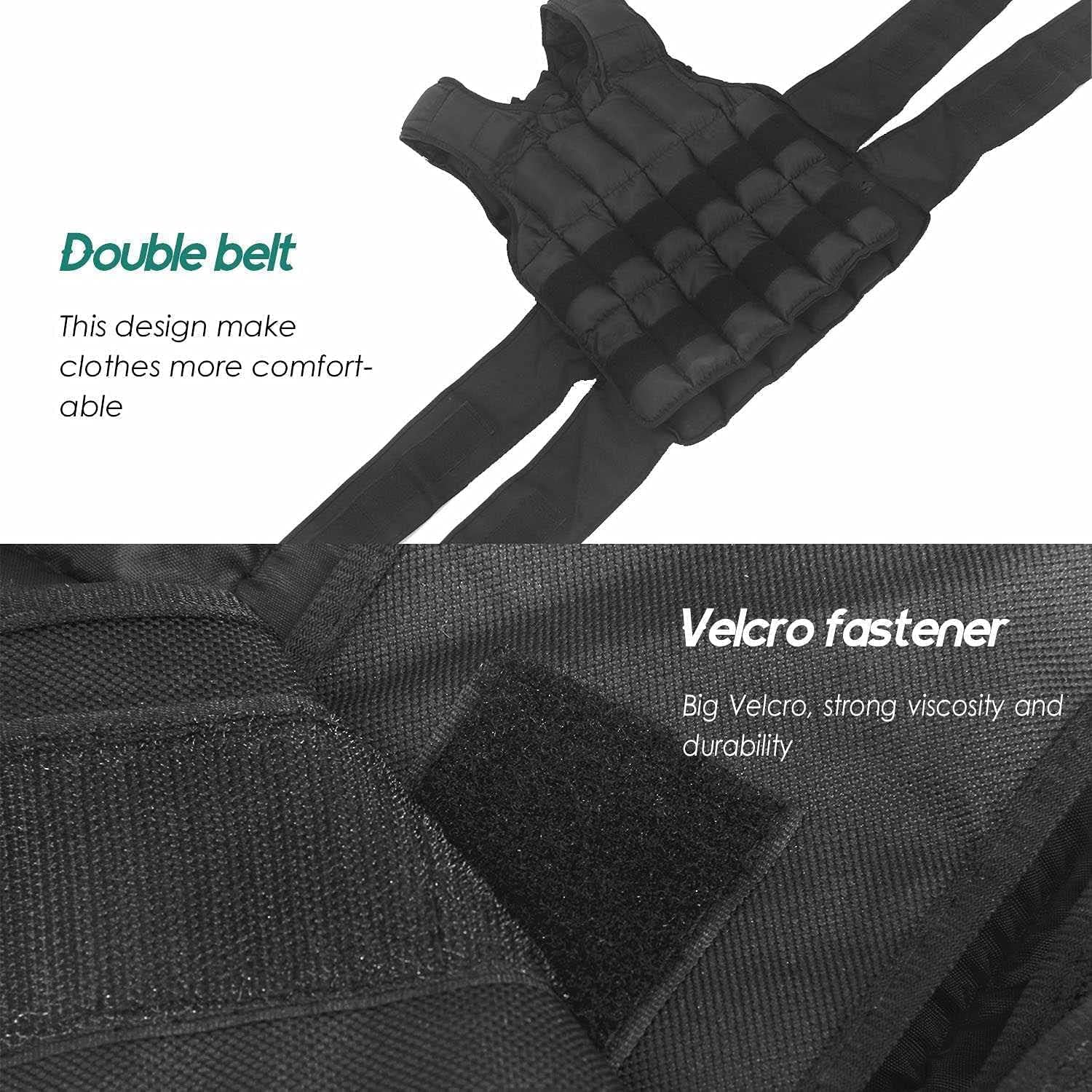 • Eigenschaften: Die Gewichtsweste gibt es in einer Einheitsgrösse, mit Verstellbaren Klettverschlüssen, dazu ein Doppeltes-Neopren-Futter für einen besseren Komfort beim Training. Eine optimale verteilte Gewichtes Lagerung und einfach herausnehmbare Sandsäcke, und auch noch Zusätzliche Schulter Polster und Kurt für eine einfache Haltbarkeit und gutem Komfort.