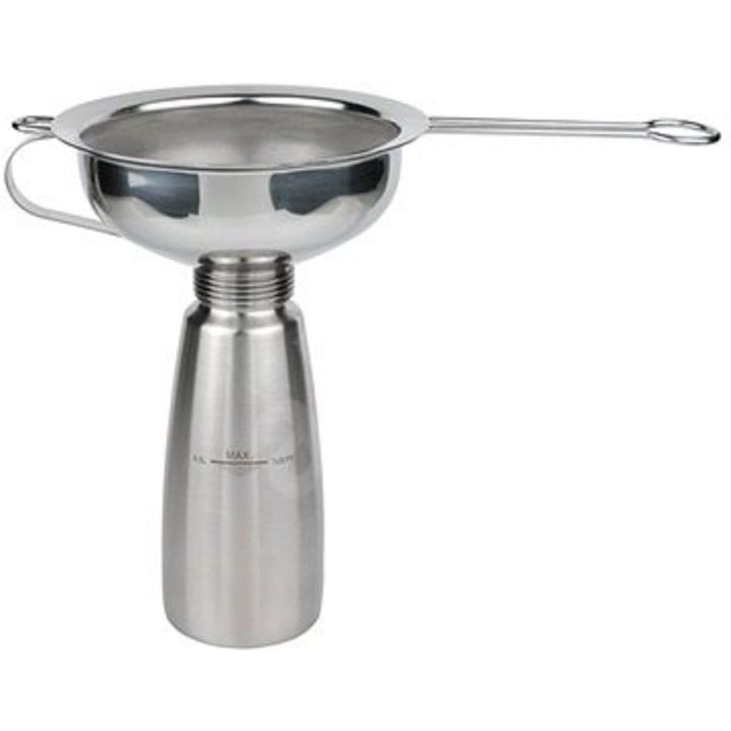 - LEICHTES HANDHABEN. Das grosse Fassungsvermögen des Trichters (750ml) und das exakt passende dazu gehörige Sieb erleichtert Ihnen die Handhabung wie kein anderes iSi Accessoires.