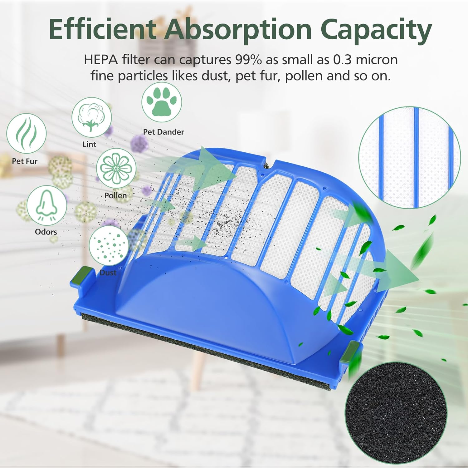 - Ersetzen Sie den irobot roomba hepa filter 600 series alle 2-3 Monate, um die Reinigungsleistung von roomba zu erhalten und gleichzeitig das Eindringen von Staub, Pollen und anderen Allergenen zu reduzieren. Saubere Bürsten sorgen für eine optimale