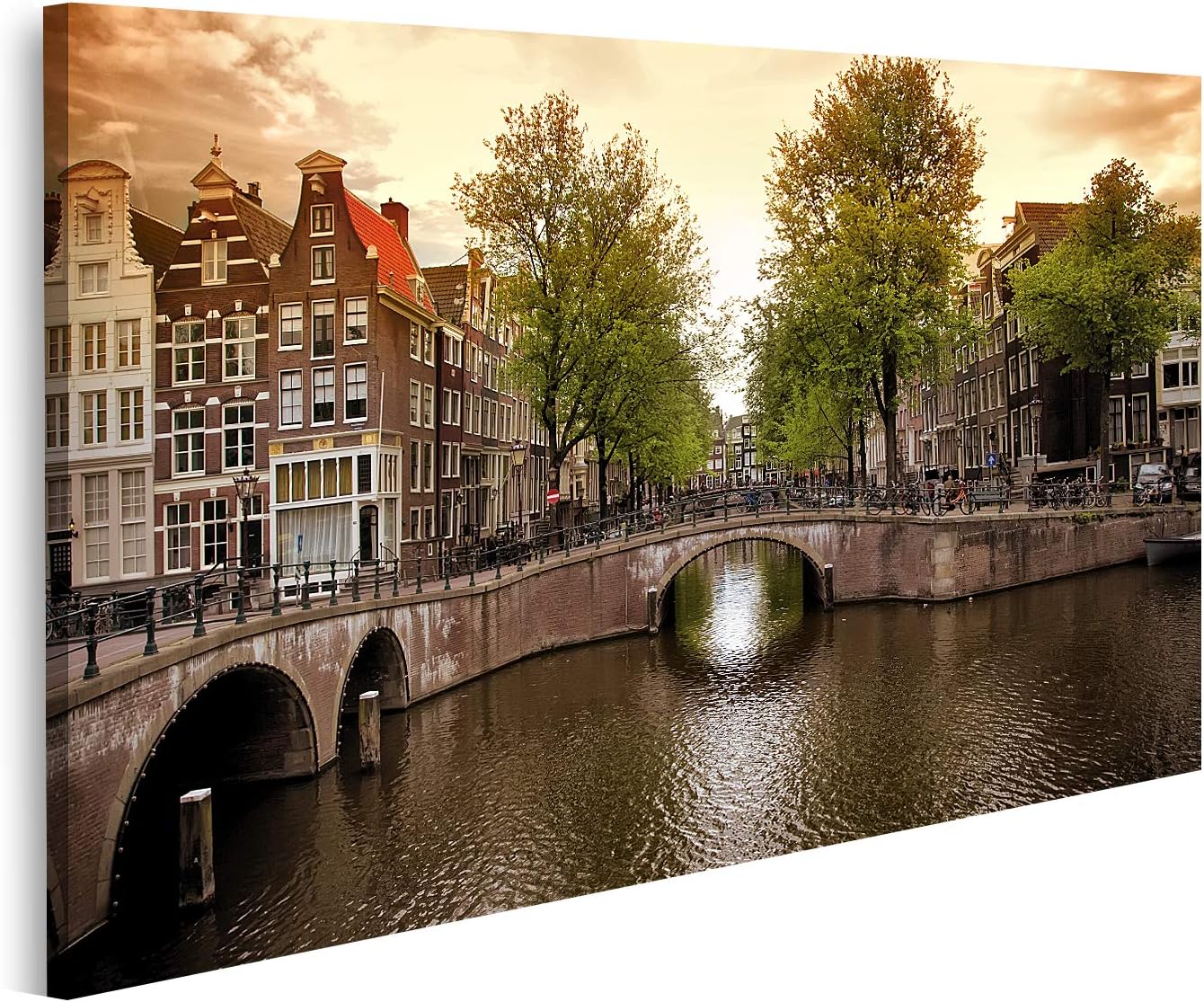islandburner Bild auf Leinwand Amsterdam Grachten Bilder Wandbilder Poster Leinwand 100x57cm, Leinwa