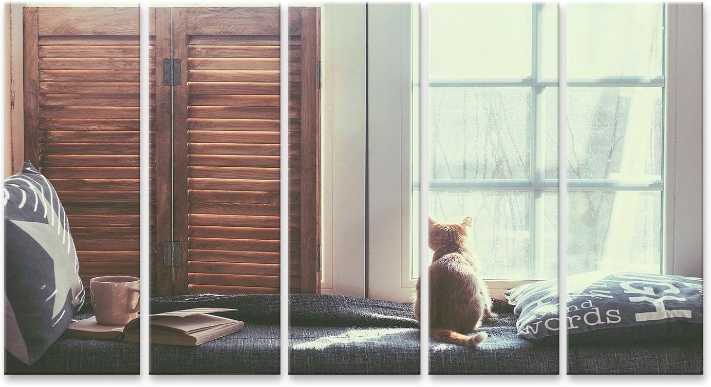 islandburner Bild auf Leinwand Katze Warm Gemütlich Fenster Buch Bilder Wandbilder Poster, Leinwand