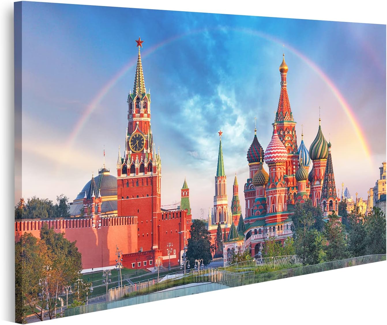 islandburner Bild auf Leinwand Moskau Panoramablick Roter Platz Kreml Bilder Wandbilder Poster, Lein