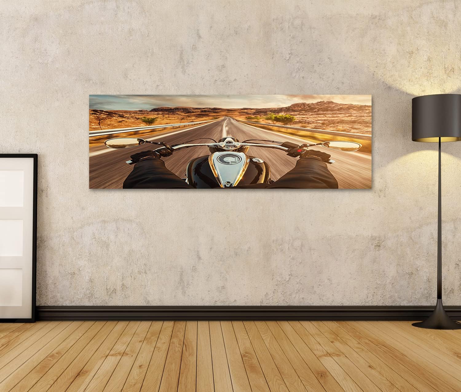 islandburner Bild auf Leinwand Motorrad Fahrer auf einsamen US Highway im Sonnenuntergang Bilder Wan