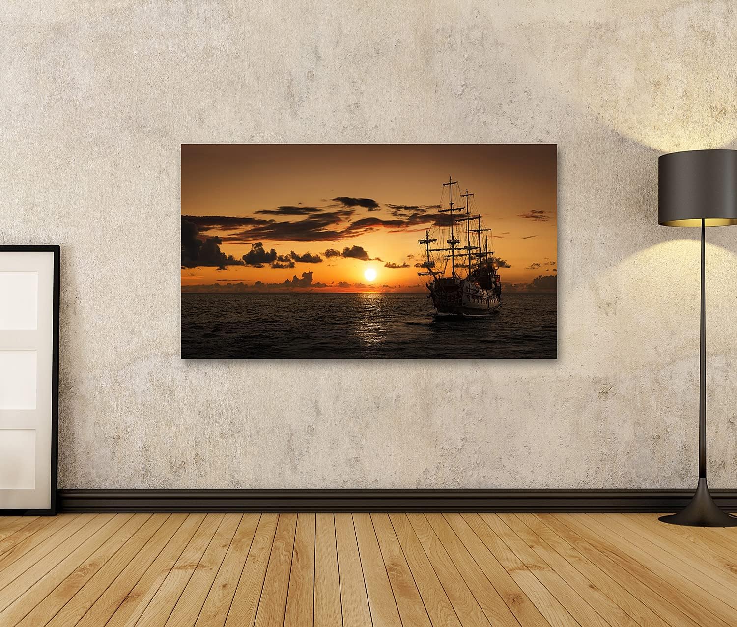 islandburner Bild auf Leinwand Piratenschiff Offenes Meer Sonnenuntergang Bilder Wandbilder Poster L