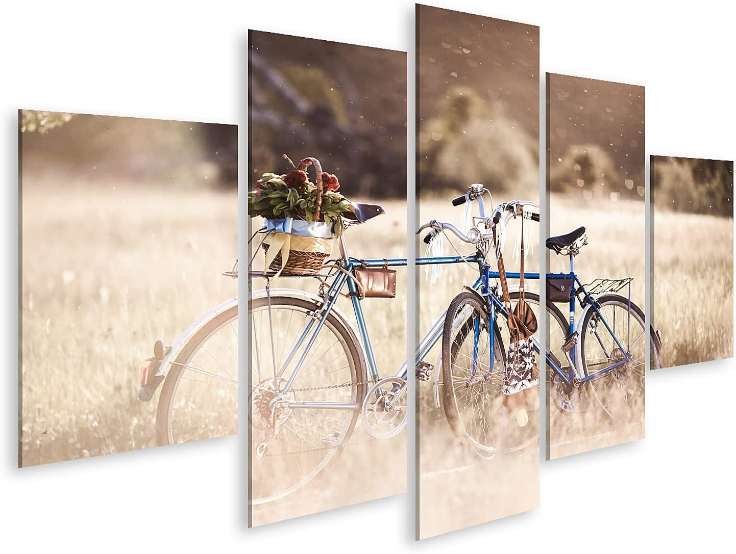 islandburner Bild auf Leinwand Zwei Fahrräder Im Feld Mit Blumenkorb Bei Sonnenuntergang Bilder Wand