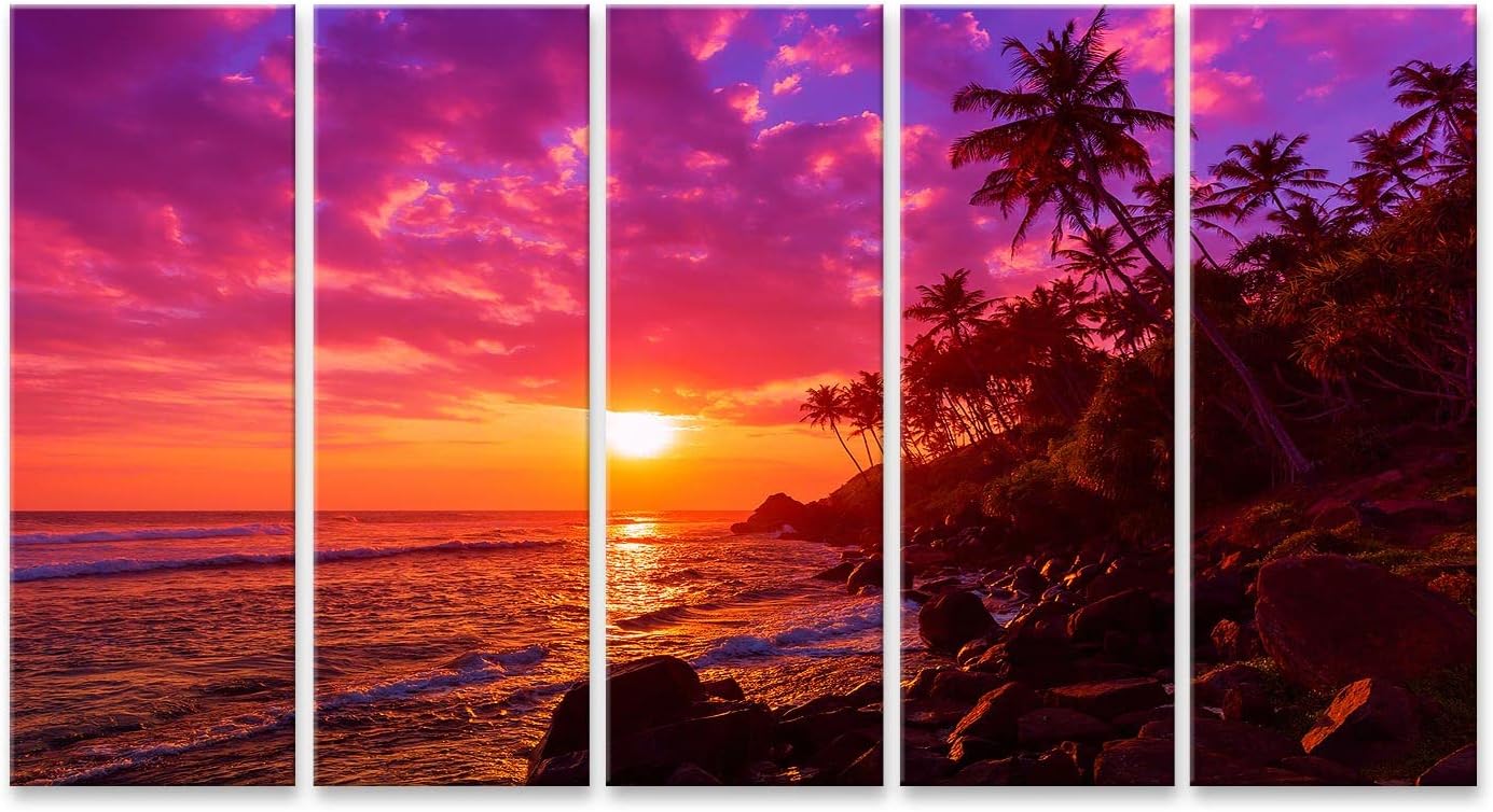 islandburner Bild auf Leinwand Sonnenuntergang Am Tropischen Strand Mit Palmen Silhouetten Bilder Wa