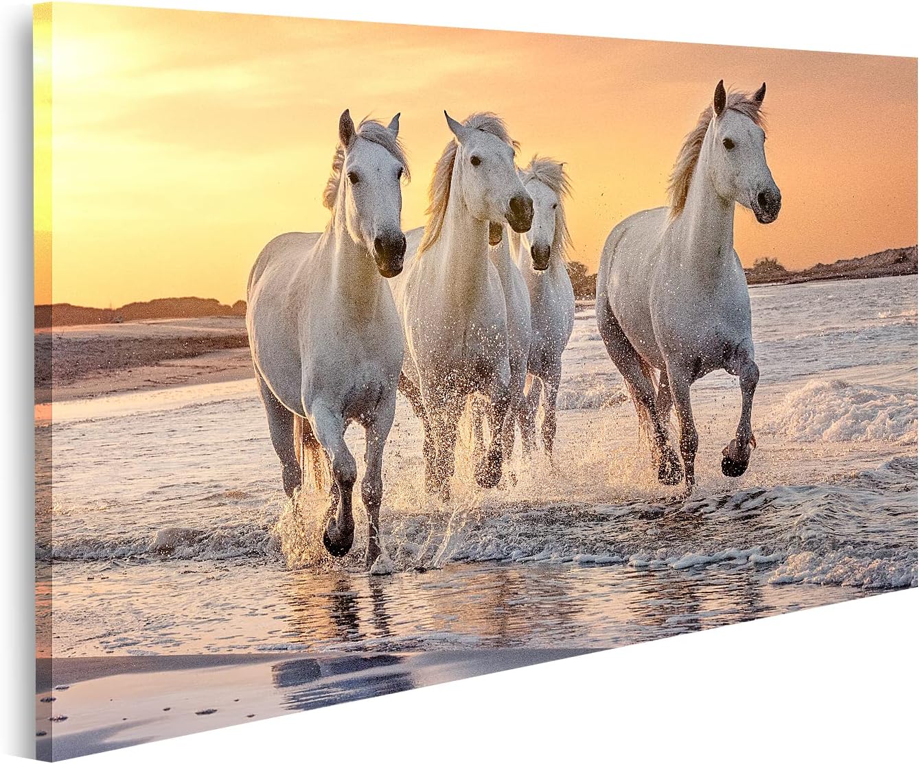 islandburner Bild auf Leinwand Weisse Pferde Camargue Frankreich Galoppierendes Wasser Über Dem Meer