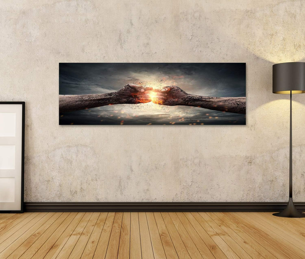 islandburner Bild auf Leinwand Zwei Fäuste Zusammenstoss Stürmischer Himmel Bilder Wandbilder Poster