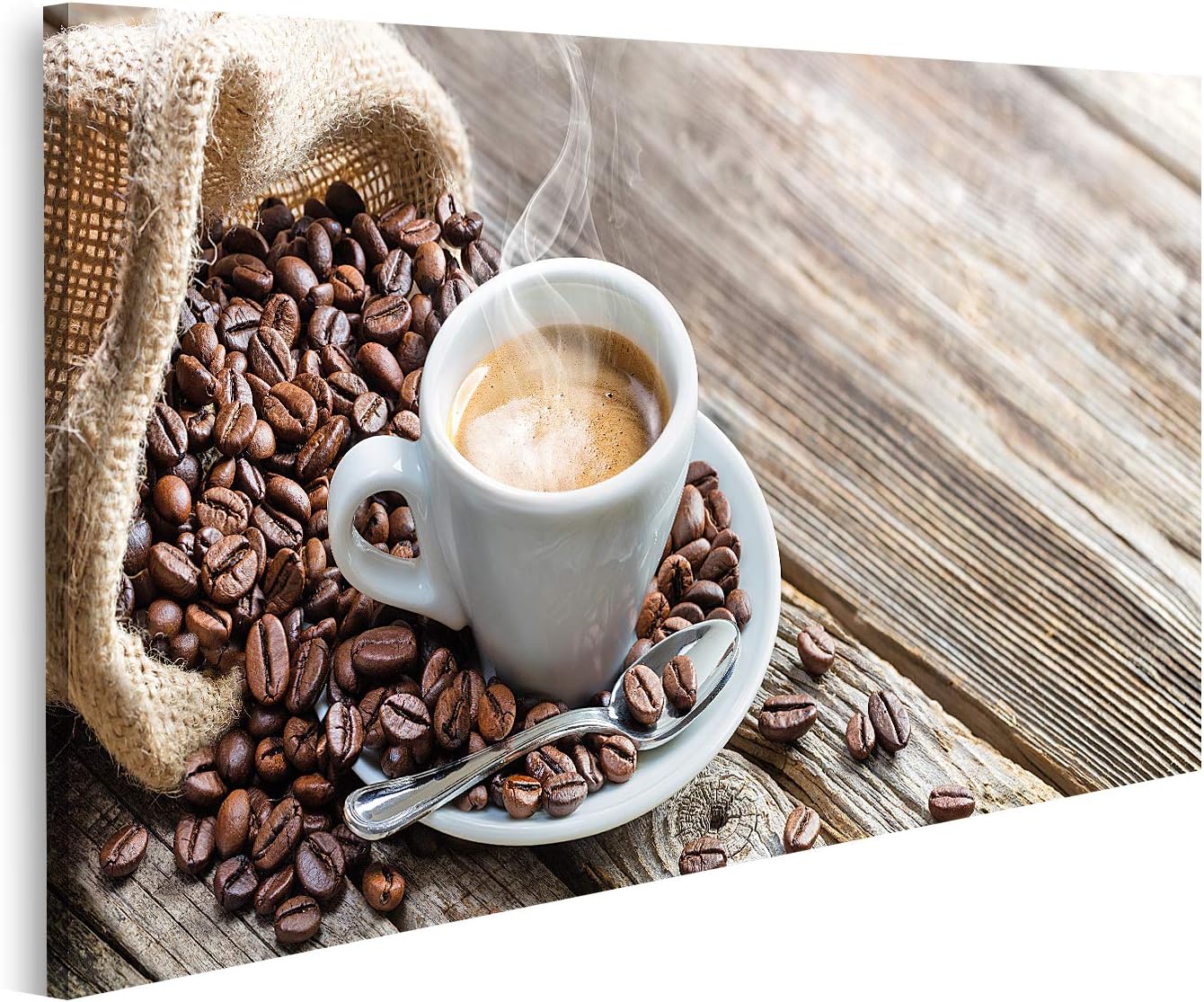islandburner Bild auf Leinwand Espresso Kaffeetasse Bohnen Vintage Tisch Bilder Wandbilder Poster Le