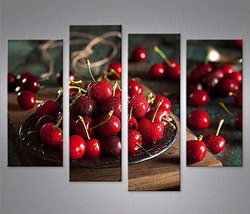 islandburner Bild Bilder auf Leinwand Kirschen Obst Küchenbild 4er XXL Poster Leinwandbild Wandbild