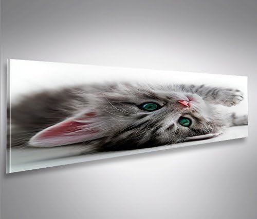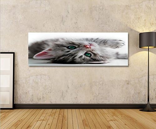 islandburner Bild Bilder auf Leinwand Kätzchen Katze mit grünen Augen Panorama XXL Poster Leinwandbi