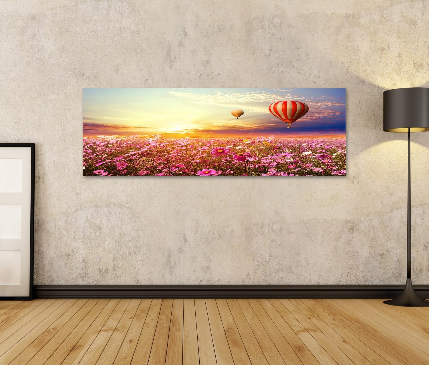 islandburner Bild auf Leinwand Landschaft Kosmosblumenfeld Und Heissluftballon Bei Sonnenuntergang V
