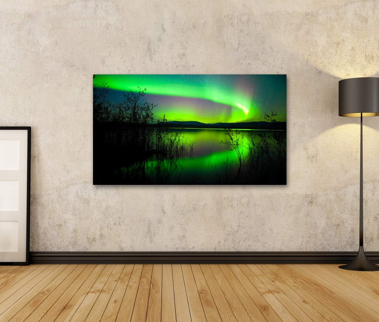 islandburner Bild auf Leinwand Nordlichter Gespiegelter See Wetterleuchten In Norwegen Bilder Wandbi