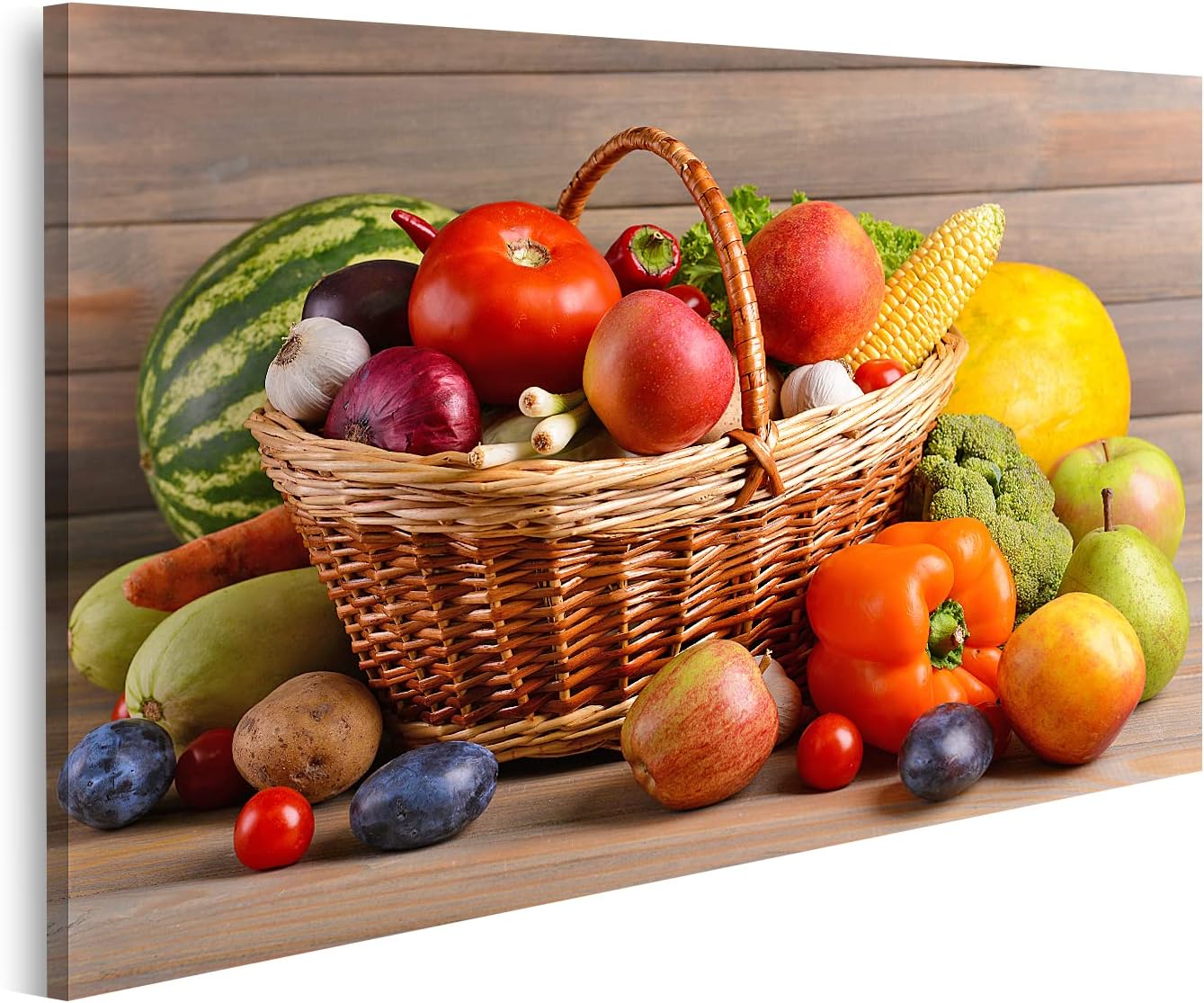 islandburner Bild auf Leinwand Korb Mit Bio Obst Und Gemüse Auf Holzuntergrund Bilder Wandbilder Pos