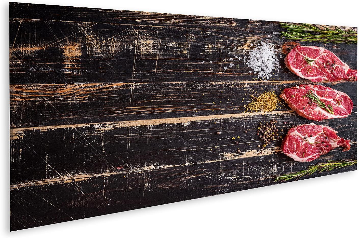 islandburner Bild auf Leinwand Rohes Fleisch Steak Gewürze Auf Dunklem Holzuntergrund Bilder Wandbil