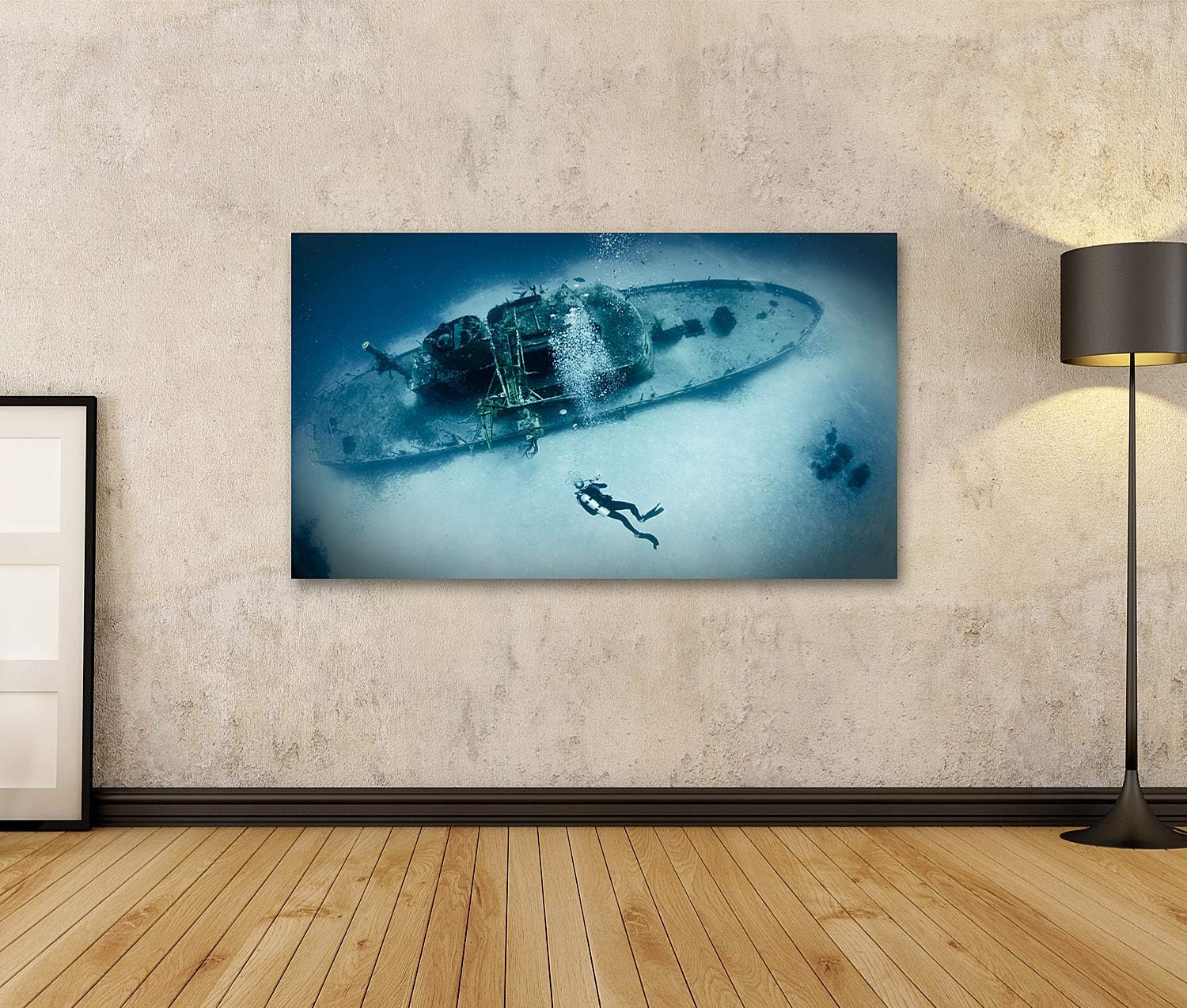 islandburner Bild auf Leinwand Taucher Schiffswrack Bilder Wandbilder Poster Leinwand 100x57cm, Lein