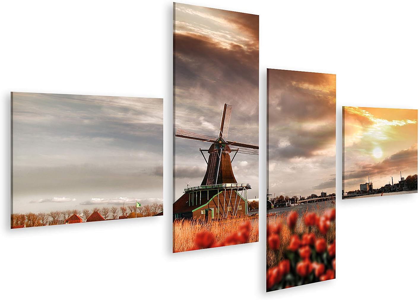 islandburner Bild auf Leinwand Traditionelle Holländische Windmühlen Mit Roten Tulpen In Zaanse Scha