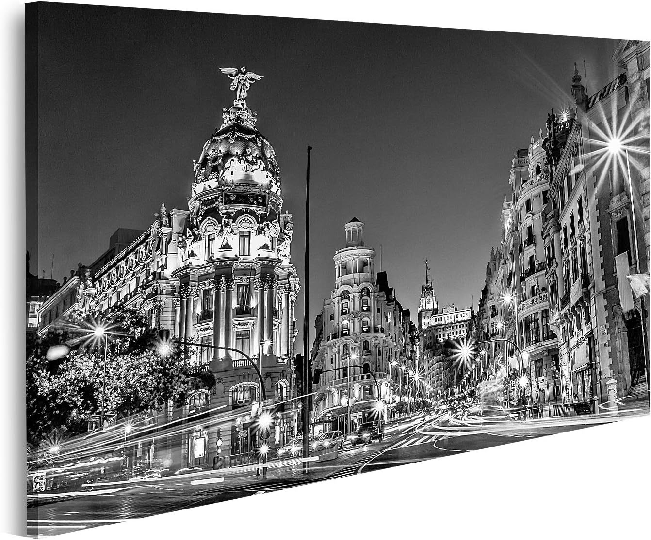 islandburner Bild auf Leinwand Rays of Traffic Lights On Gran Via Street Main Shopping Street In Mad