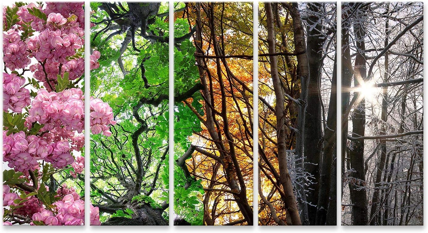 islandburner Bild auf Leinwand Vier Jahreszeiten Bilder Wandbilder Poster Leinwand 160x80cm - 5 Teil
