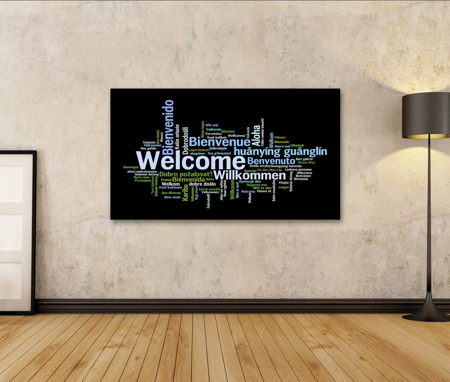 islandburner Bild auf Leinwand Willkommen Welcome Verschiedenen Sprachen Worten Eingangsbereich Haus