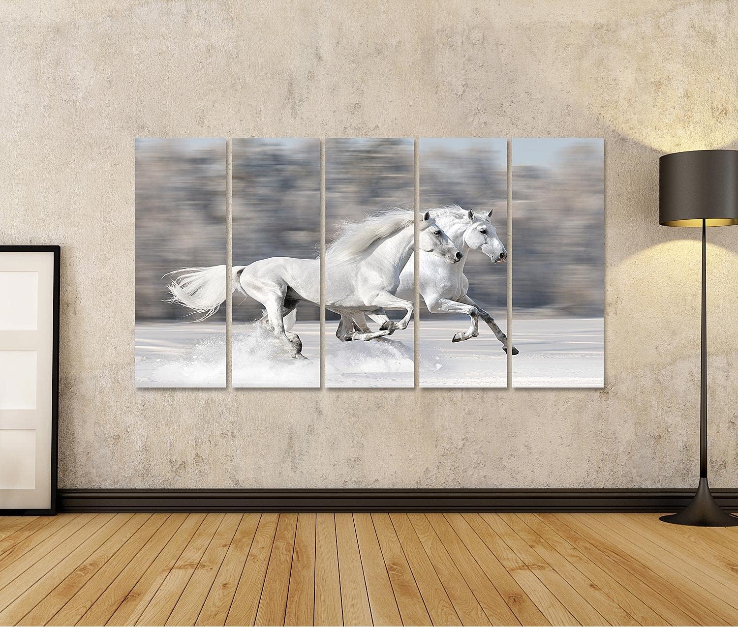islandburner Bild auf Leinwand Zwei Weisse Pferde Im Winter Galoppieren Bilder Wandbilder Poster Lei