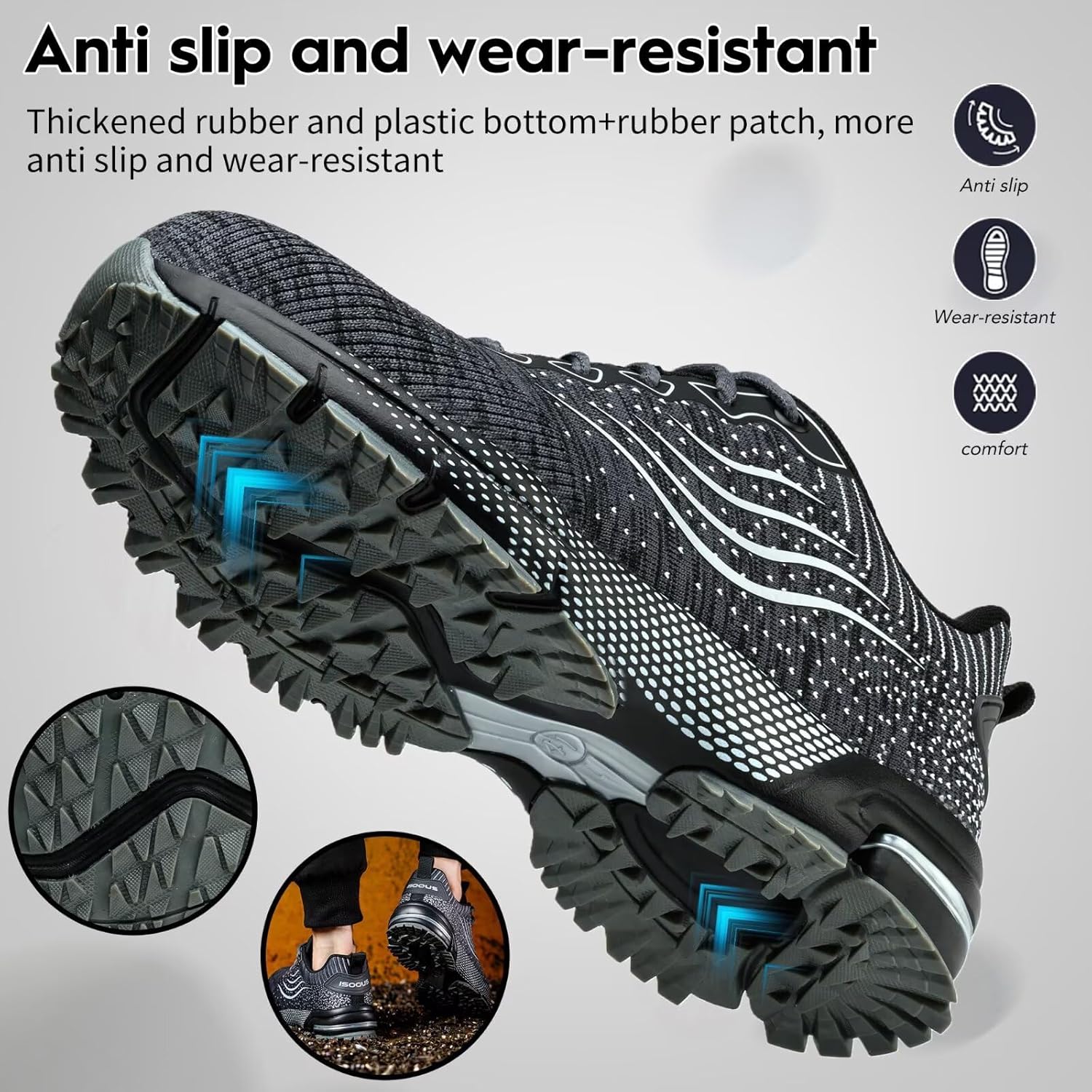- Sohle: Die Sohle der Schutzschuhe Besteht aus Gummi + EVA Eingebautem Kevlar,anti-piercing,anti-rutschen
