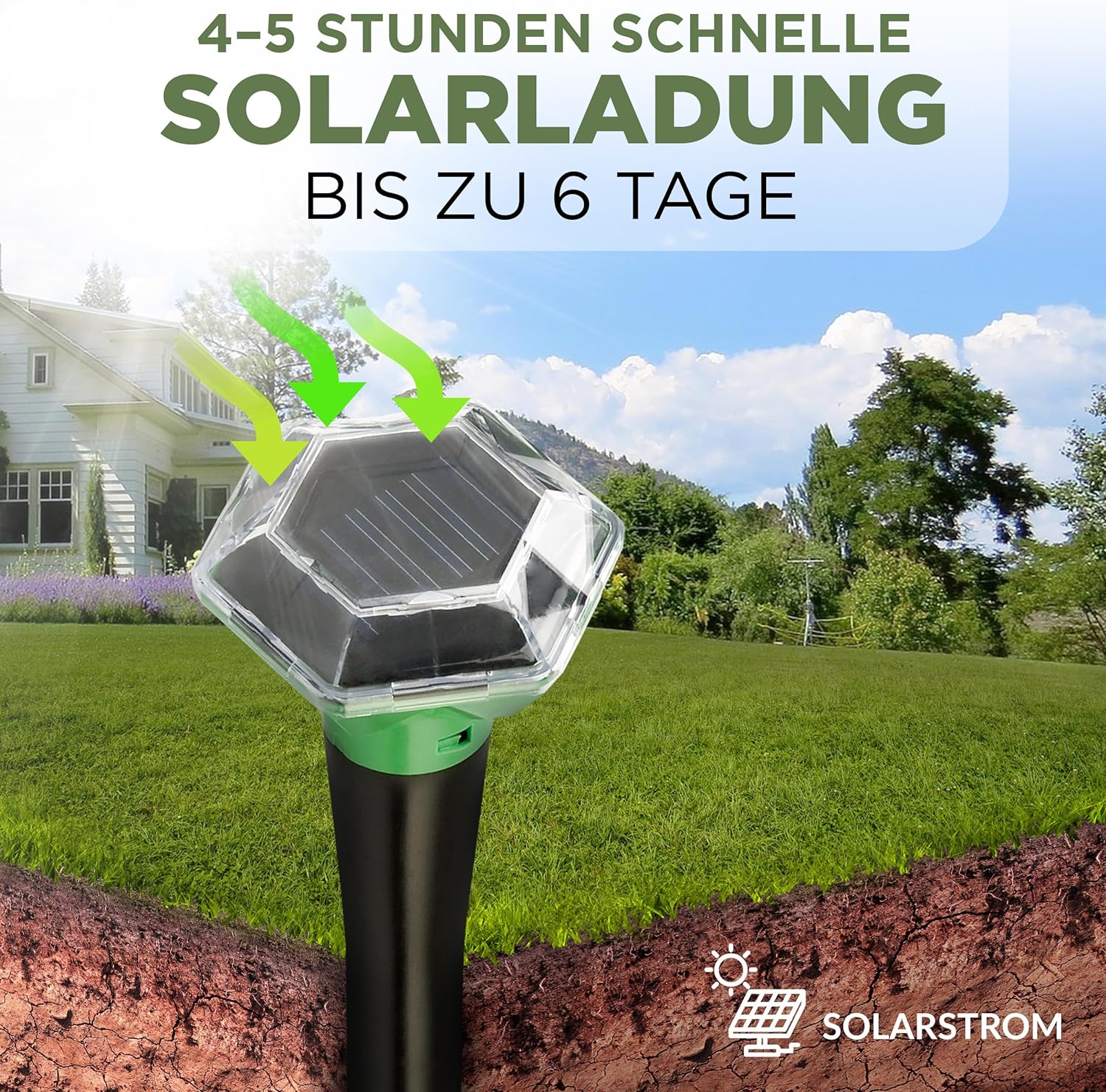 - NATÜRLICHE SONNENKRAFT: Da unsere Tiervertreiber solarbetrieben sind, muss man nichts weiter tun, als die Geräte an den Stellen zu positionieren, an denen störende Besucher anzutreffen sind. Die leistungsfähigen Solarzellen sorgen für eine maximale