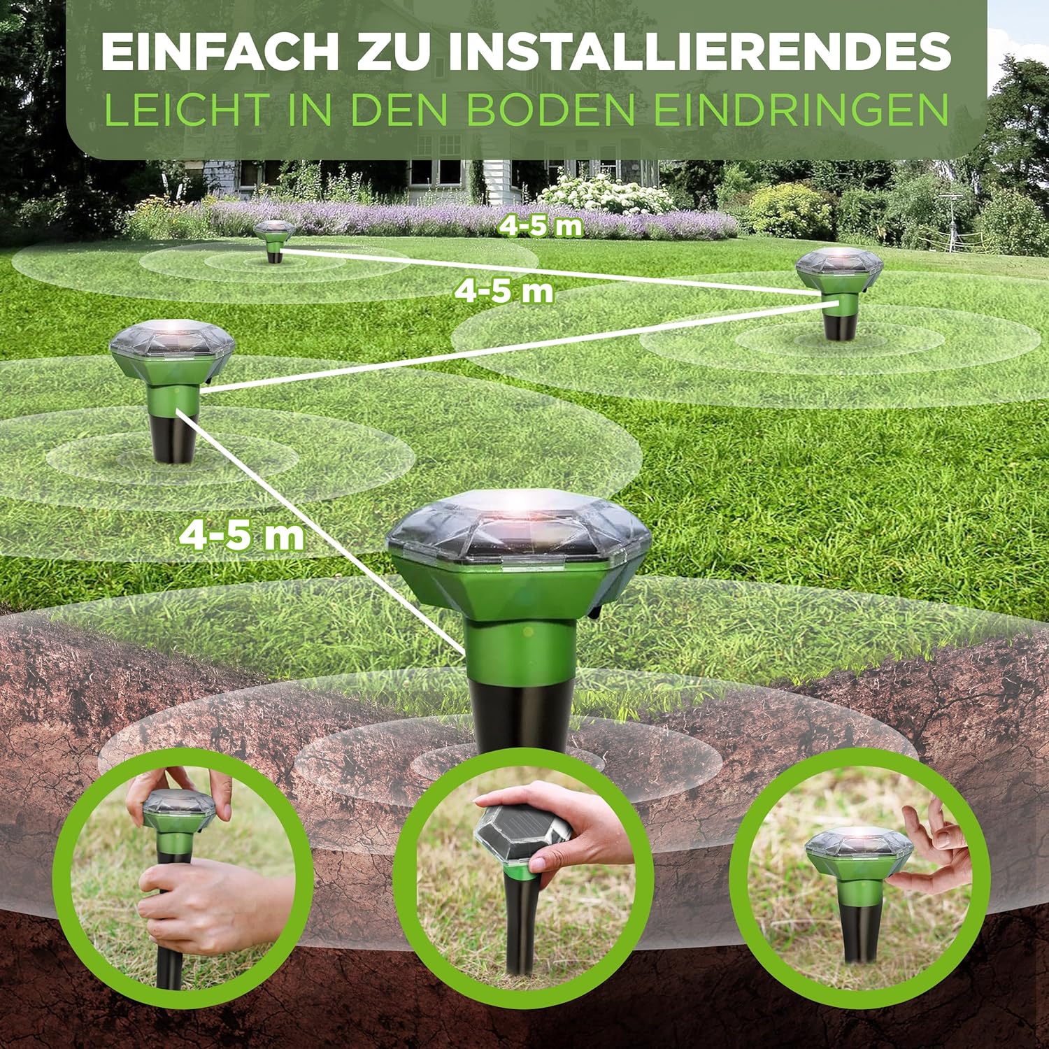 - HOHE WIRKSAMKEIT: Maulwürfe und andere Erdbewohner sind häufig ein grosses Ärgernis für viele Gartenbesitzer. Unser Maulwurfschreck stört den Tast- und Hörsinn der Tiere, sodass sie sich freiwillig ein neues Zuhause suchen. Der Wirkungsbereich