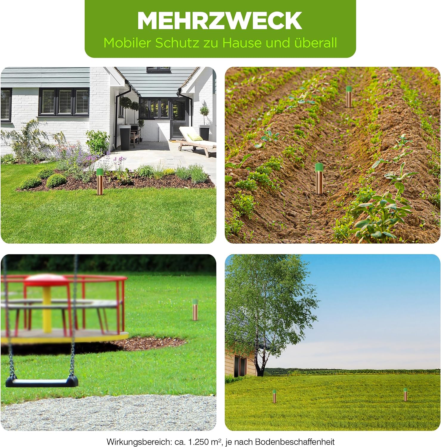 - Hält Maulwürfe, Wühlmäuse, Ameisen und Schlangen mittels Quarzschwingungen und zusätzlichen Vibrationen von Ihrem Grundstück fern, keine Störungen für Menschen oder nützliche Gartentiere, ohne Gift, Köder, Spray, Pulver