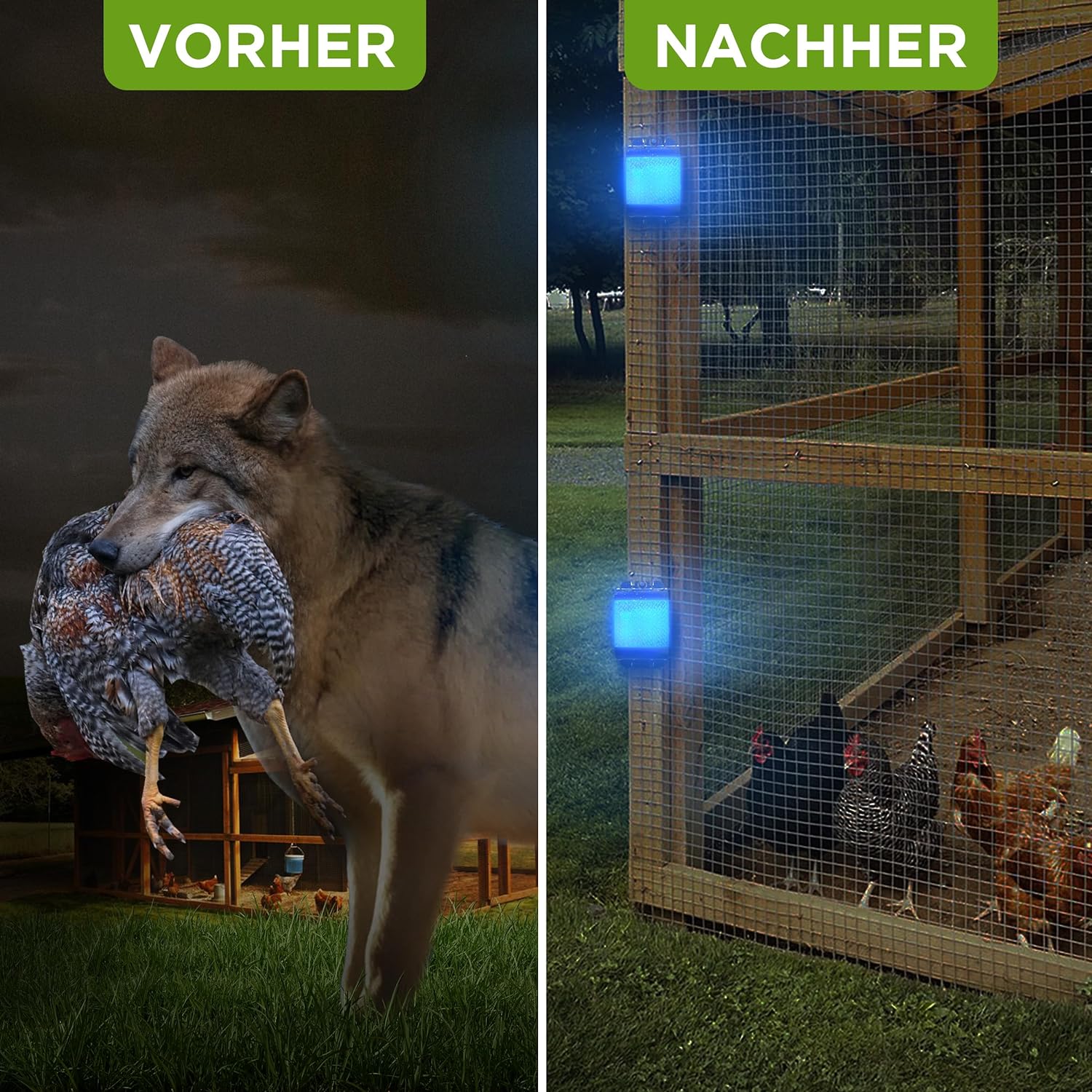- PRÄVENTIVER SCHUTZ IN DER NACHT : Vorzeitige und kontinuierliche Abschreckung durch eigenständiges Aufblinken und Lichtreflektion bei Anstrahlung durch z.B. Scheinwerfer