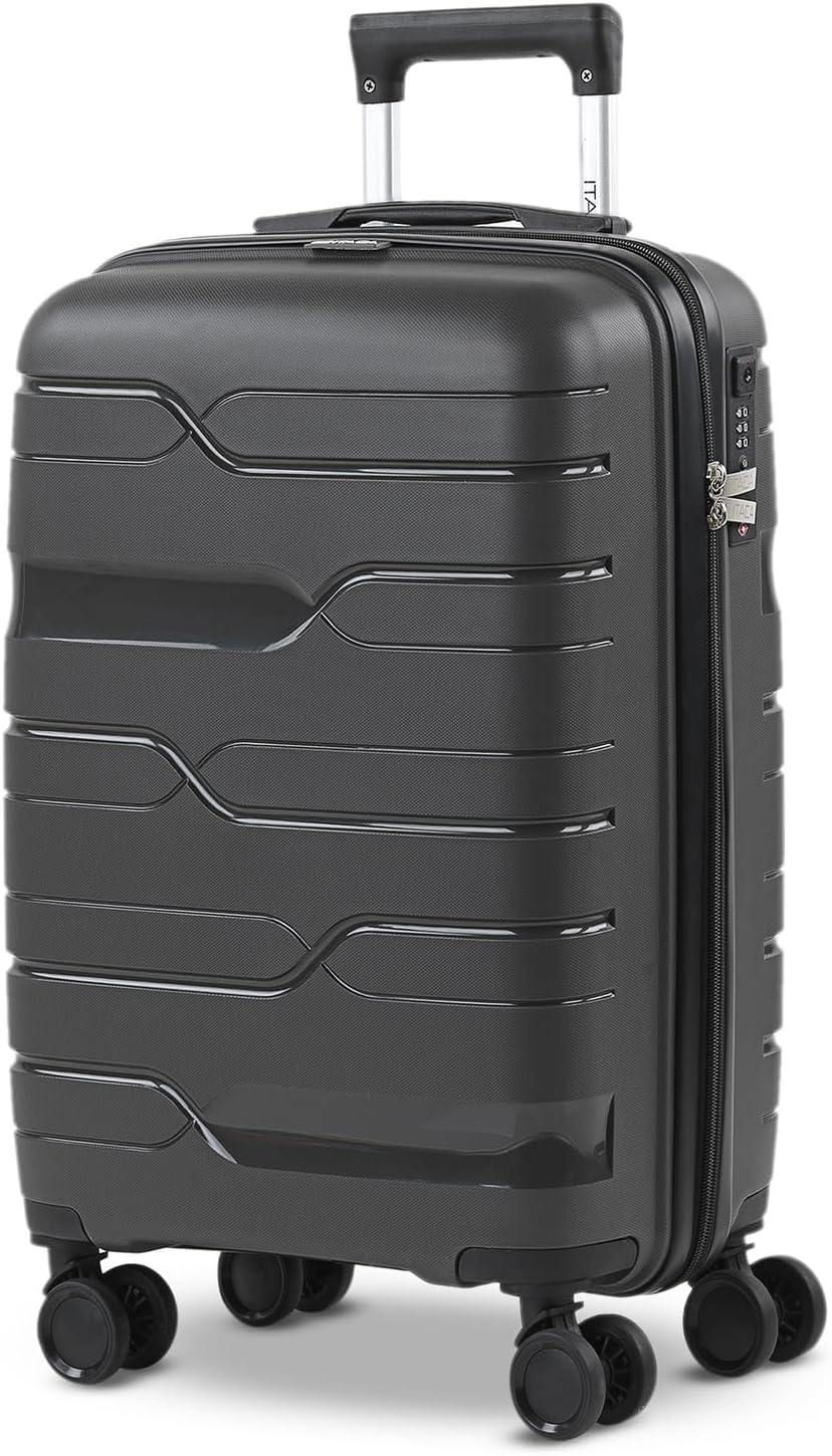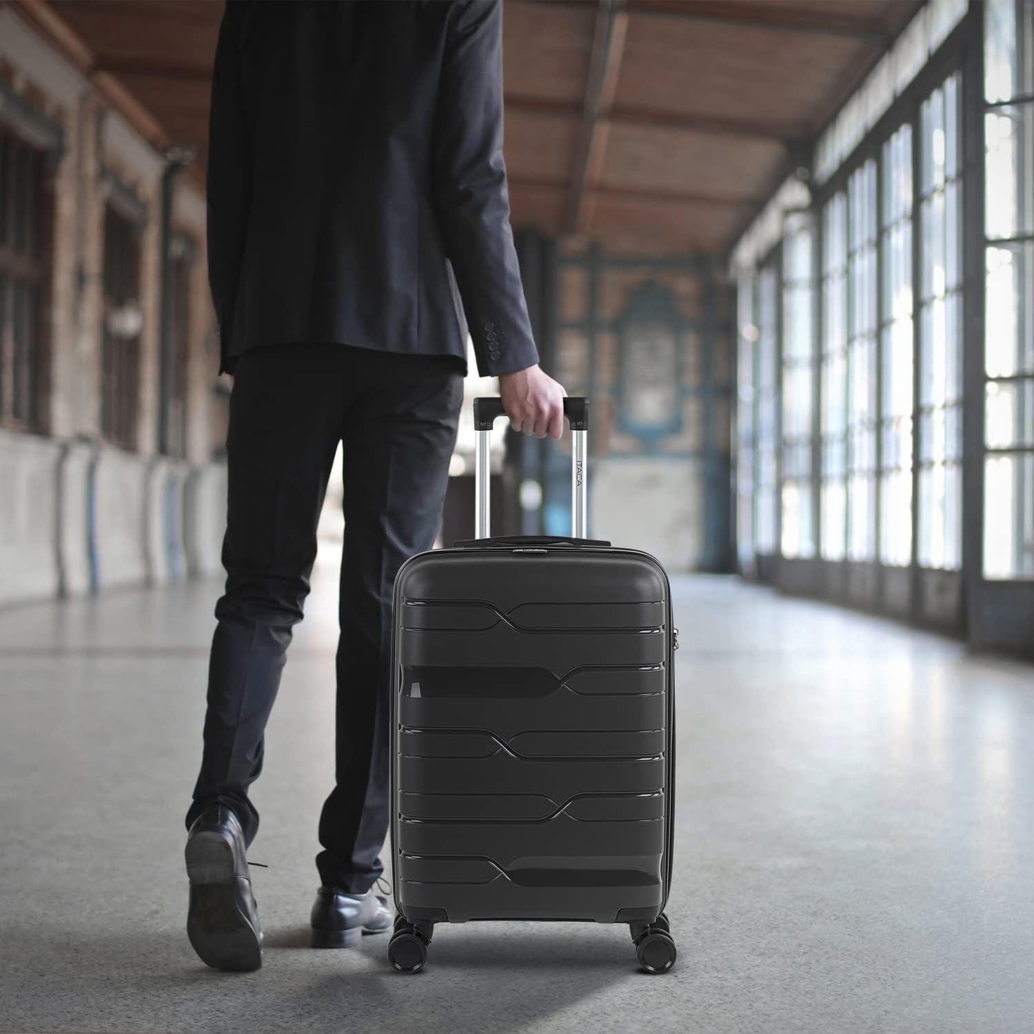 - Handgepäck trolley [ 55x38x20 ] cm das bietet maximalen komfort in jeder position mit einem ergonomischen doppelrohr teleskopgriff mit verriegelungsknöpfen und einem PP aussengehäusematerial.