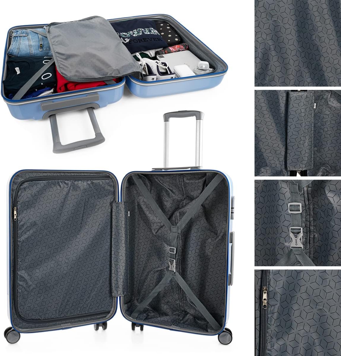 - Gefütterter innenraum ultraleicht- koffer und trennwand mit reissverschluss, verstellbare träger und mehrere fächer.