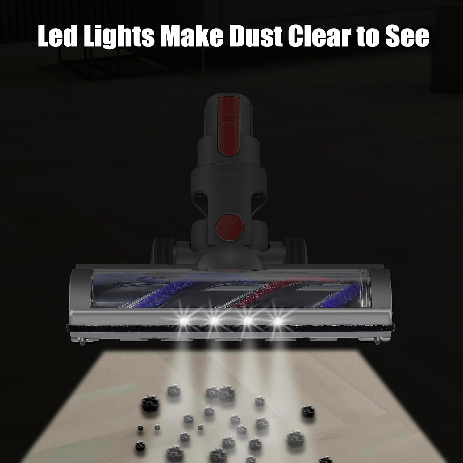 - KOMFORTABEL: Die Vorderseite der Bürste ist mit vier unabhängigen LED-Leuchten ausgestattet, die die Unterseite während der Reinigung beleuchten, besonders in schwach beleuchteten Räumen wie unter dem Tisch, unter dem Sofa und anderen Orten, wird der Staub nirgendwo mehr entweichen.