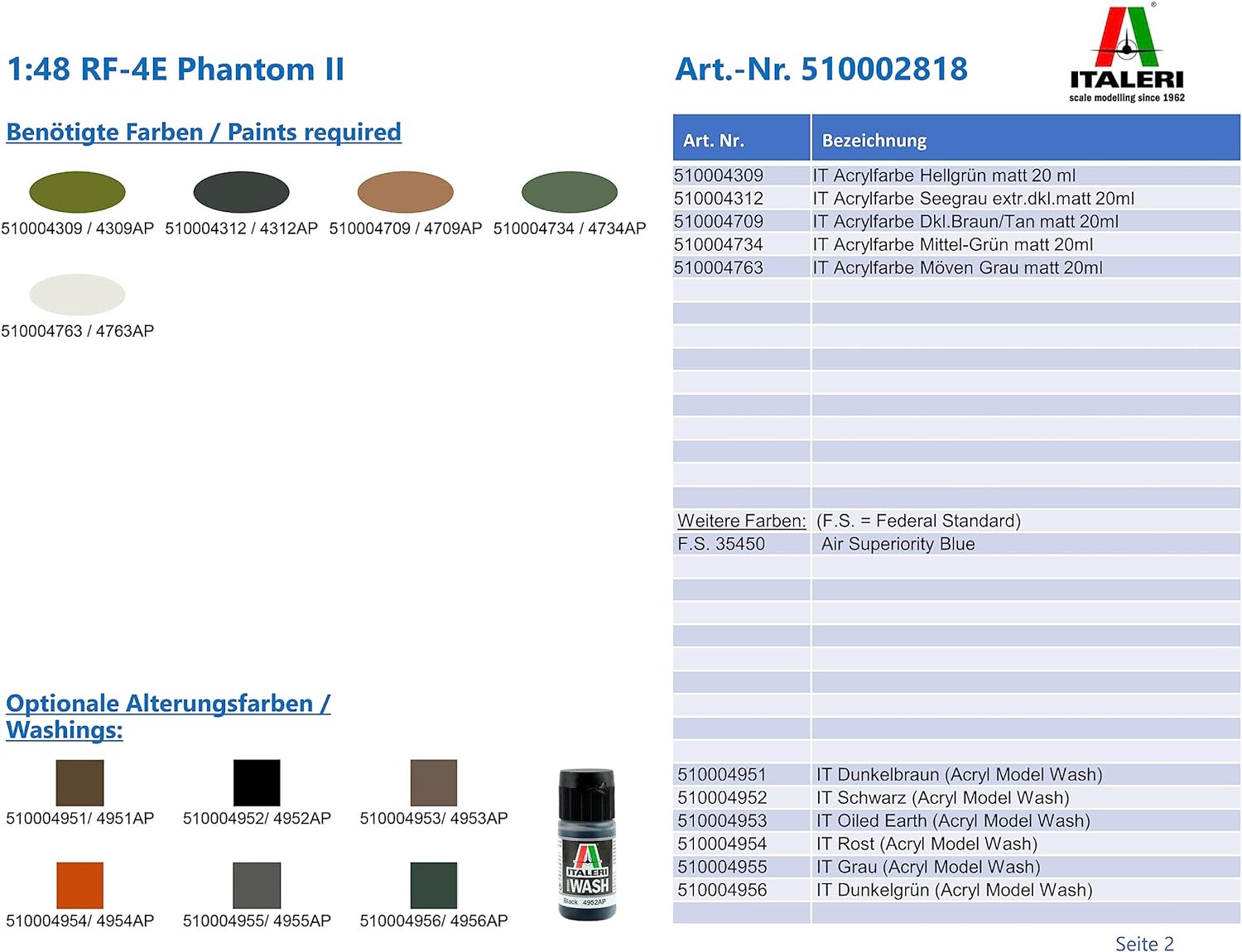 Italeri 2818 1:48 RF-4E Phantom II - Modellbau, Bausatz, Standmodellbau, Basteln, Hobby, Kleben, Pla