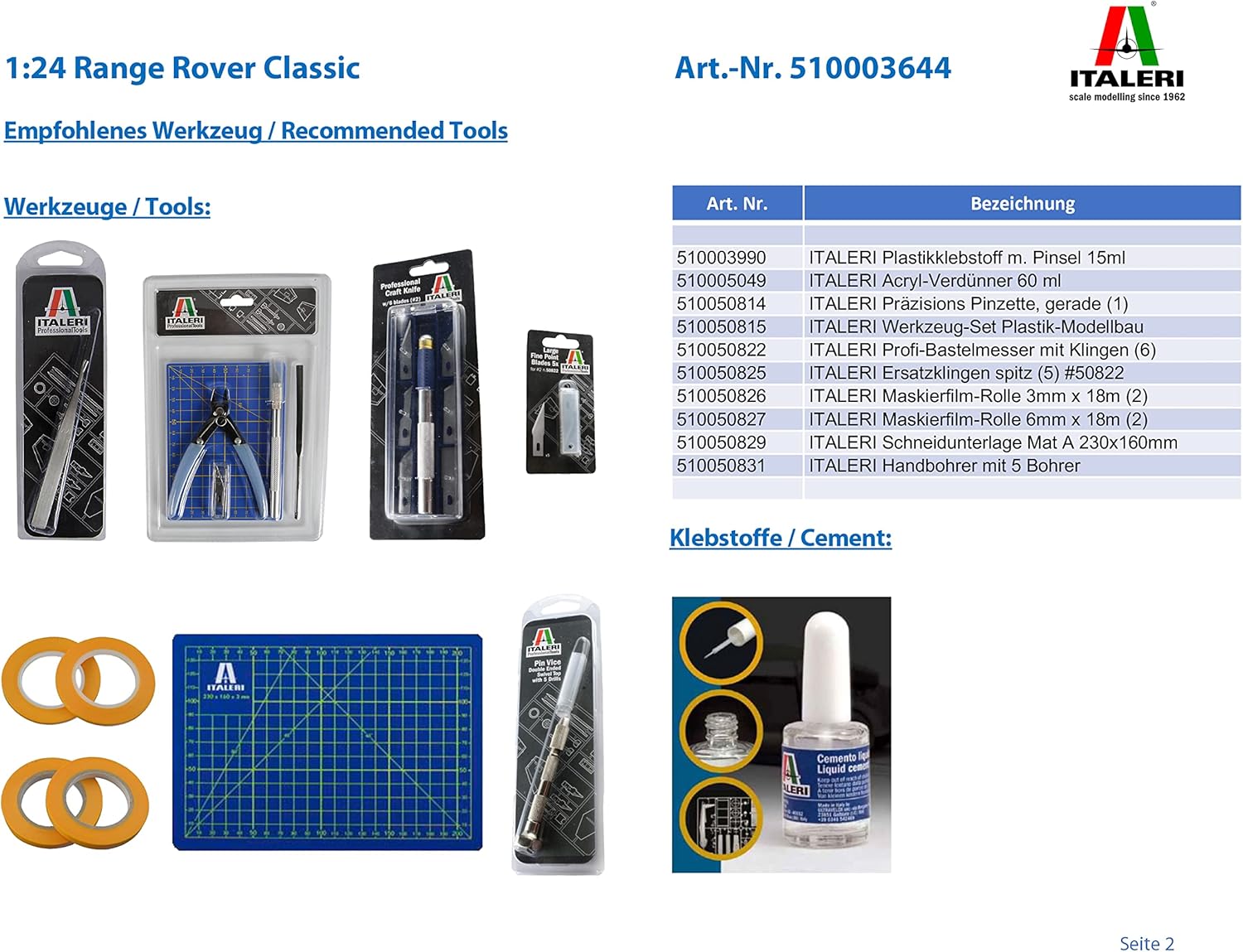 - Werkzeug, Klebstoff und Farben sind im Lieferumfang des Plastikbausatzes nicht enthalten. Diese müssen optional erworben werden.