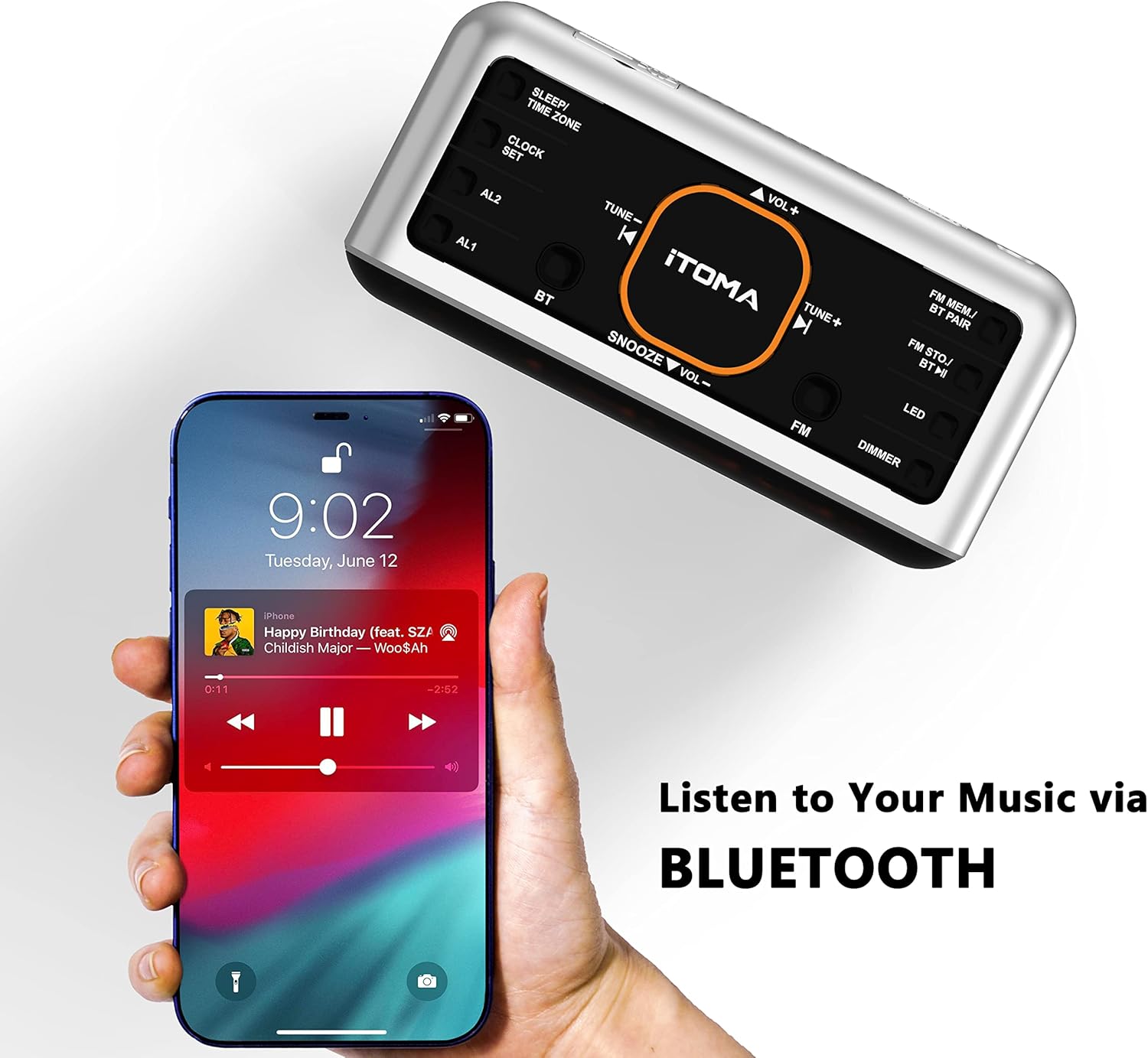 - BLUETOOTH 5.1& USB-Ladeanschluss: Unser Wecker verwendet das neueste Bluetooth, mit dem Sie Ihre Lieblingsmusik ohne Unterbrechungen hören können. Ein zusätzlicher USB-Anschluss (1.5 A 5V) ermöglicht es Ihnen, Ihr Smartphone oder andere intelligente