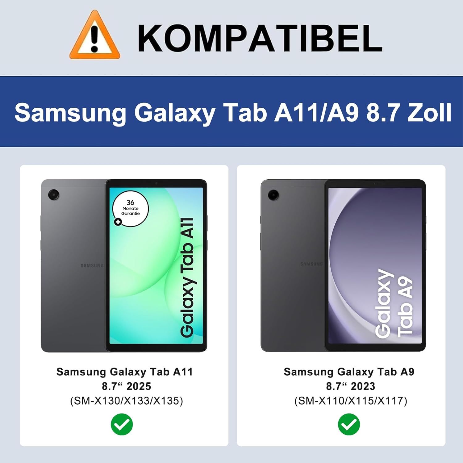 - Tastatur Samsung Galaxy Tab A11 8.7 Zoll: Speziell entworfen für Samsung Galaxy Tab A11 8,7 Zoll 2025 (Modelle: SM-X130/X133/X135). NICHT geeignet für anderen Samsung Galaxy Tablet Modellen. Bitte überprüfen Sie die Modellnummer des Tablets vor dem