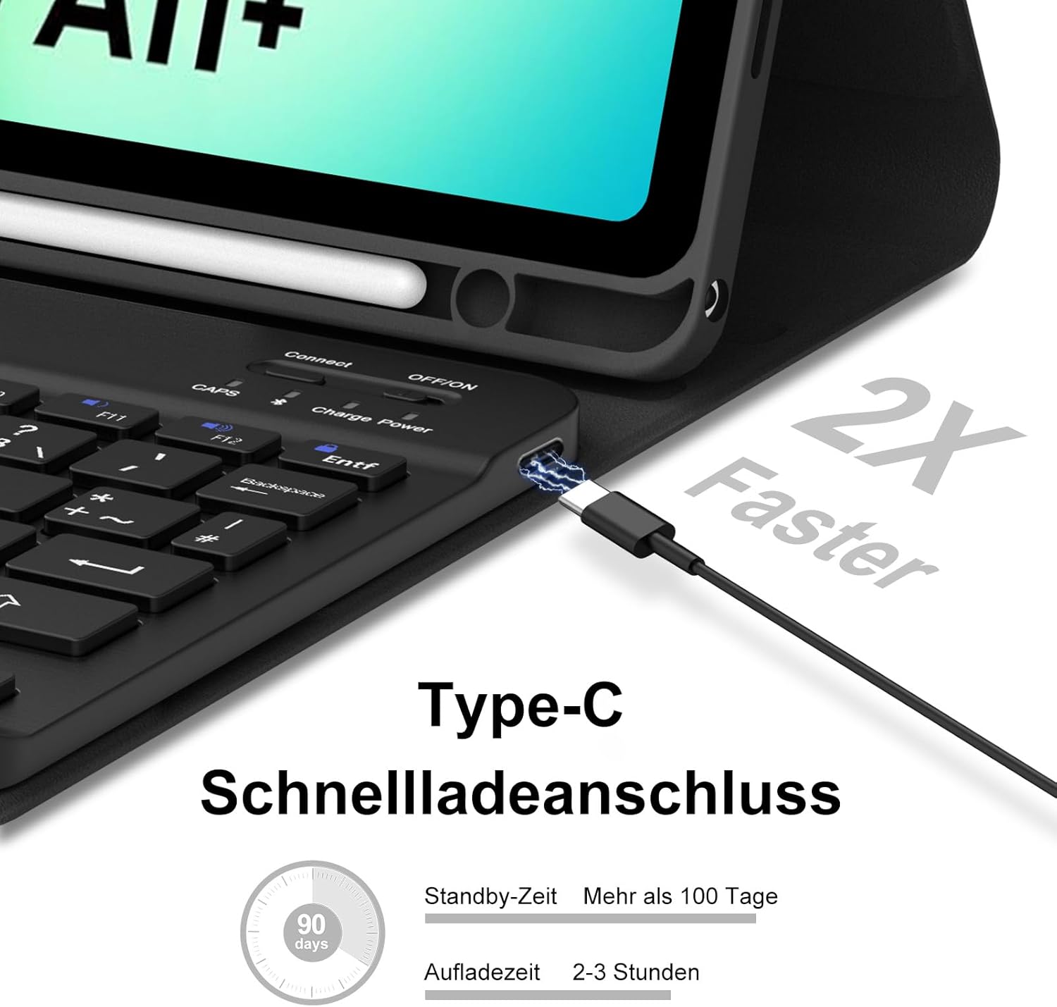 - Samsung Galaxy Tab A11 Plus Keyboard: Die Tastatur ist aus High-End-ABS-Material hergestellt und keine billige Silikontastatur. Der Sprungmechanismus unter jeder Taste ermöglicht eine taktile Rückmeldung bei jedem Tippen, und helfen, schneller und