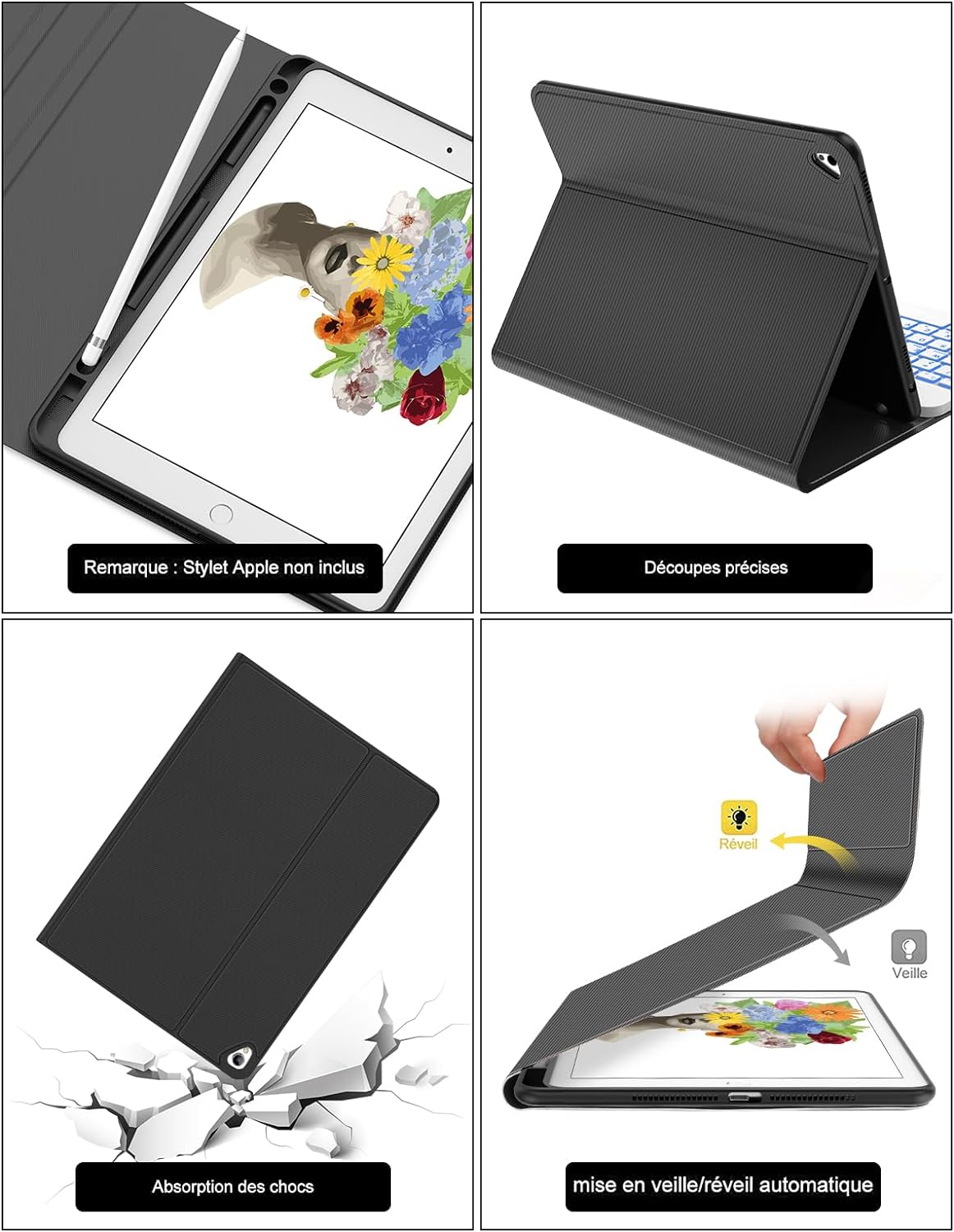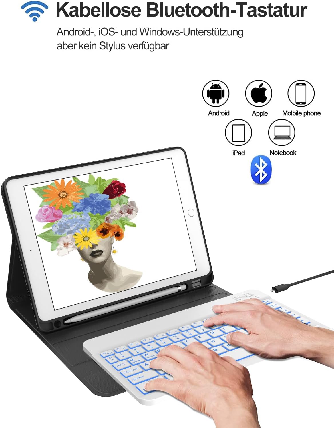 - 【Rundumschutz】: Die weiche TPU-Innenschale schützt Ihr iPad 9 vor Stössen und die hochwertige PU-Aussenschale schützt Ihr iPad vor Kratzern. ipad 9 generation hülle mit tastatur Alle Löcher sind präzise zugänglich und bieten einen Rundumschutz