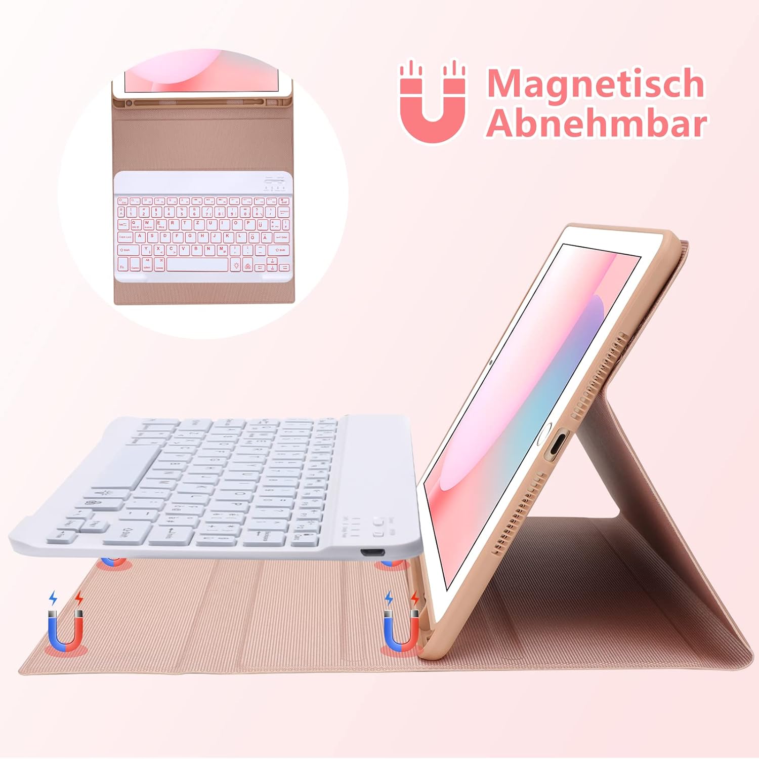 - 【Magnetisch abnehmbar】: Die ipad 5 generation hülle mit tastatur und das Gehäuse sind magnetisch befestigt, sodass sie leicht getrennt oder kombiniert werden können. Ermöglicht das Hin- und Herwechseln zwischen einem leichten Laptop und einem
