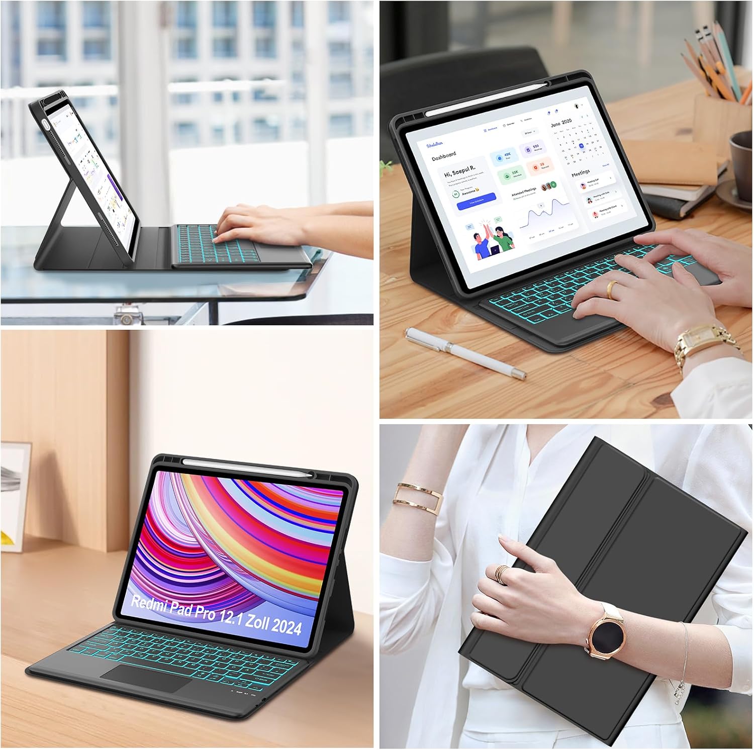 - Hülle Tastatur für Redmi Pad Pro: Das Gehäuse hat 3 Rillen zum Einstellen der Betrachtungswinkel, ist rutschfest, das durchdachte Design passt sich leicht an den für Sie bequemsten Winkel an. Perfekt zum Arbeiten, Schreiben oder Ansehen von Videos