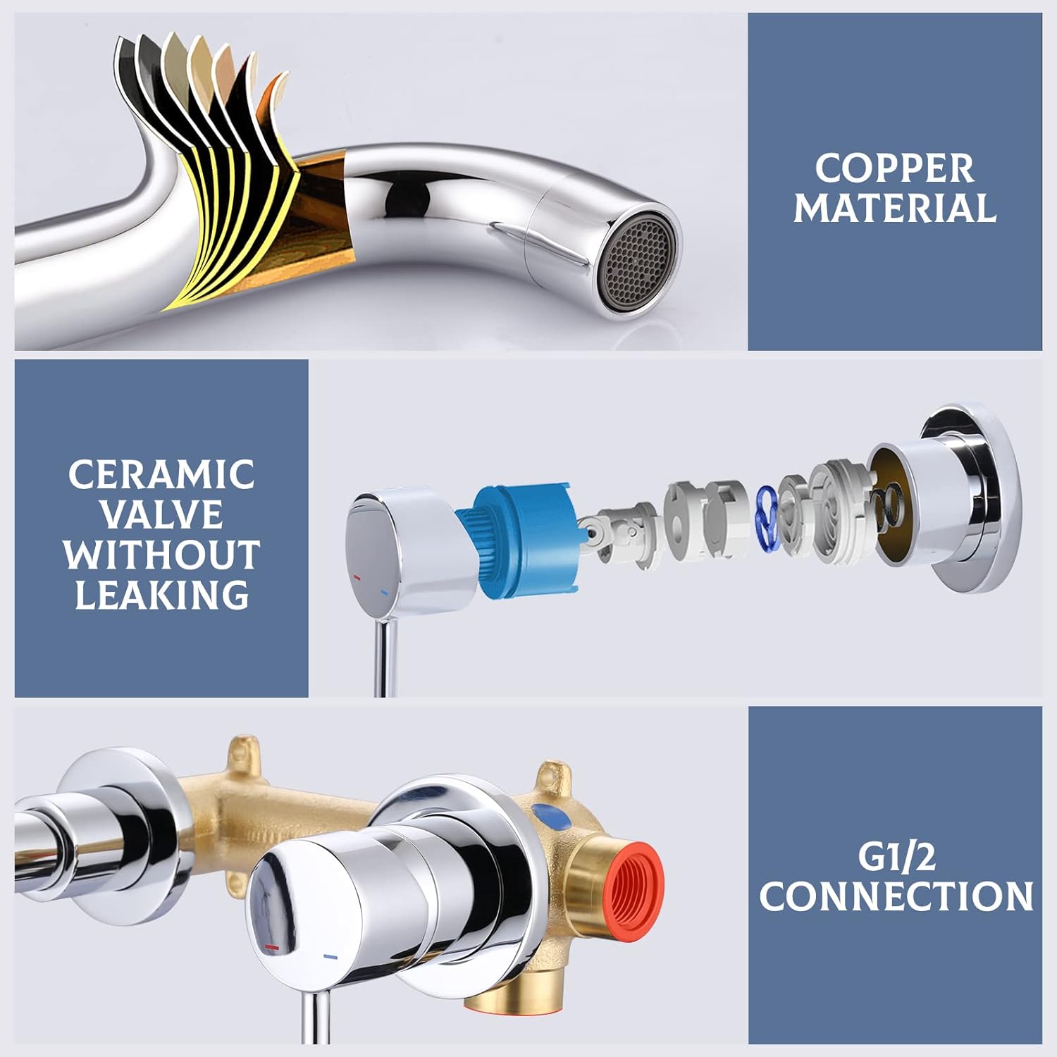 - Benutzerfreundliches Design - Unsere Waschbeckenarmatur ist 360° schwenkbar. Dann kann man den Auslauf nach oben ohne Tasse verwenden und Gesicht bequem waschen. Wasserhahn Bad Unterputz ist sowohl platzsparend als auch stilvoll. Das ist Ihr perfekte