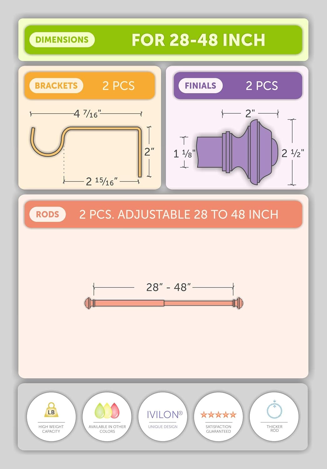 • Jede Gardinenstange Set ist sorgfältig geprüft für Qualitätssicherung. Clip Ringe separat erhältlich.