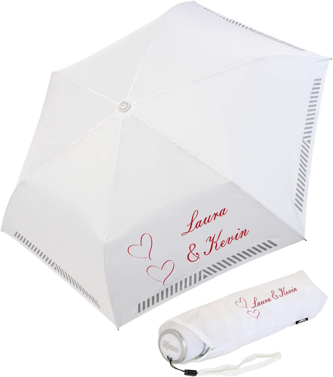 iX-brella Mini Hochzeits-Taschenschirm mit reflektierender Borte Namen und Herzen personalisiert Zwe