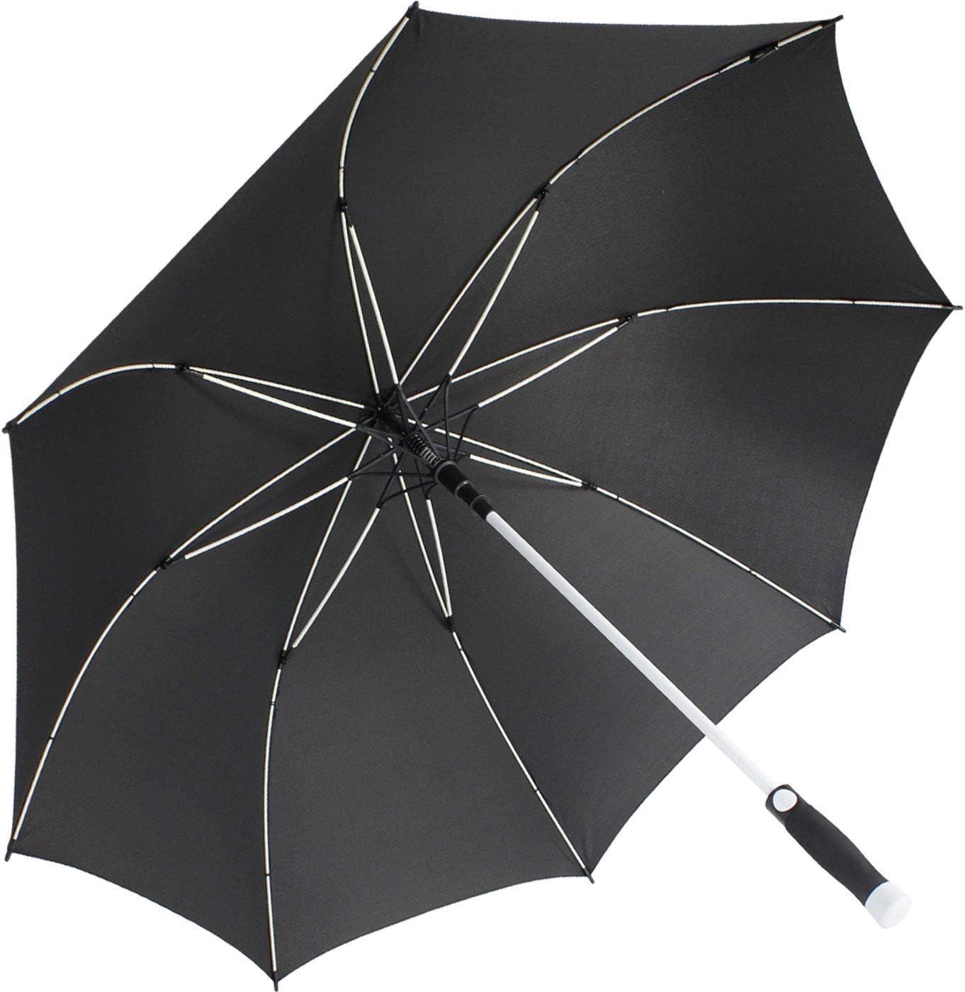 - Partnerschirm mit Automatik und Fiberglas-Gestell, passend für zwei Personen. Das Weiss von Gestell, Knopf und Griffende bildet einen schönen Kontrast zum schwarzen Dach. Durch das Fiberglas-Gestell ist der Schirm stabil und angenehm leicht. Bedruckt