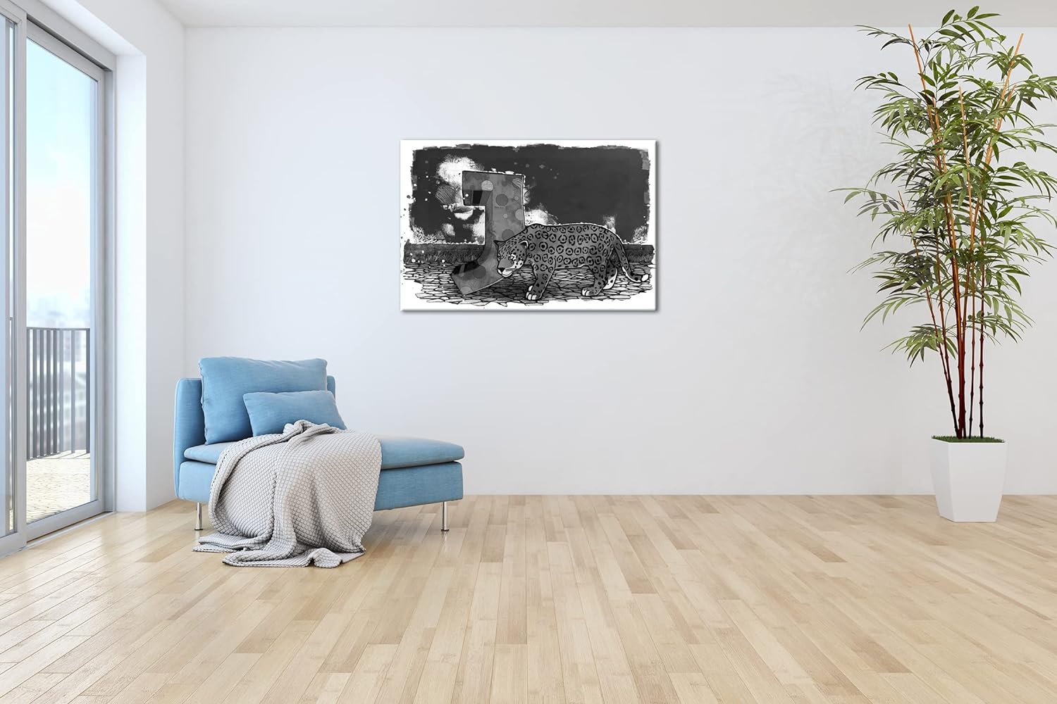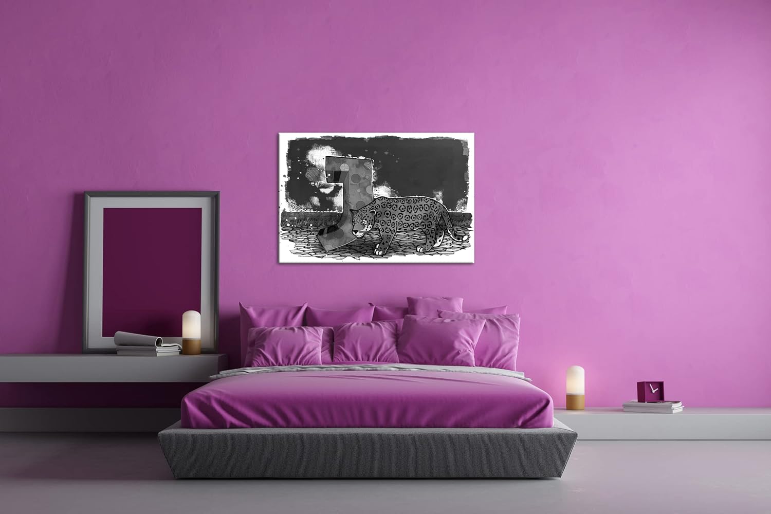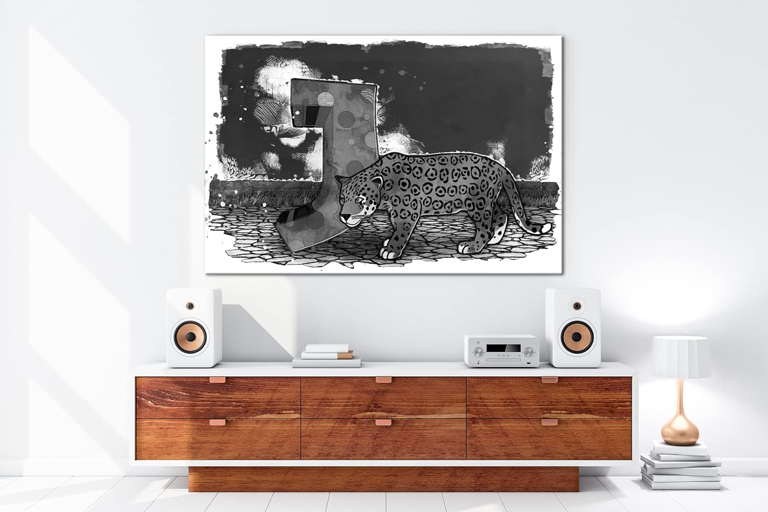 deyoli J wie Jaguar Format: 80x60 Effekt: Schwarz&Weiss als Leinwandbild, Motiv fertig gerahmt auf E