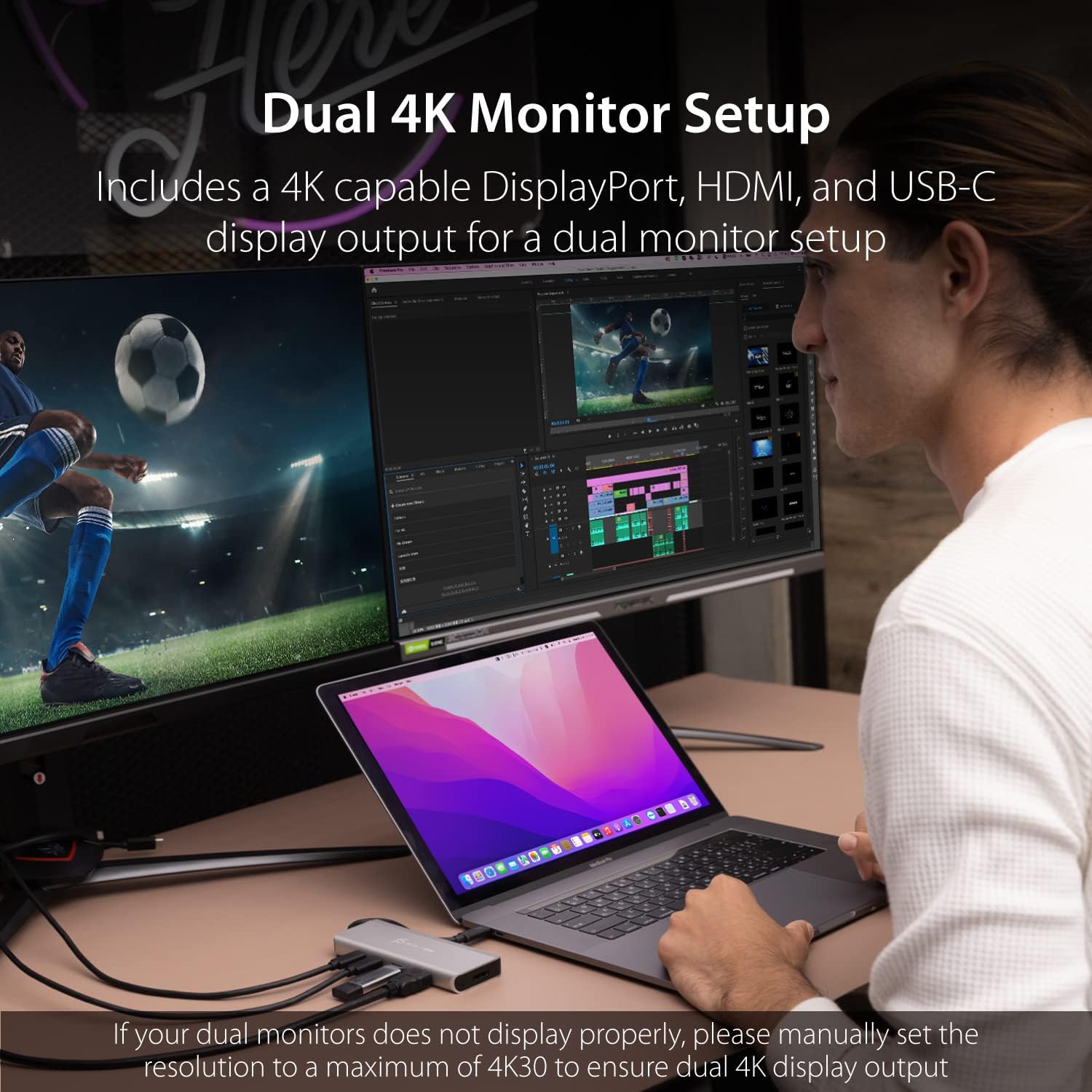 • 【Duales 4K Monitor Setup】 - Enthält einen 4K-fähigen DisplayPort-, HDMI- und USB-C-Displayausgang für ein Dual-Monitor-Setup. Thunderbolt 3 | 4 kompatibel und es ist keine Treiberinstallation erforderlich. Unterstützt den erweiterten