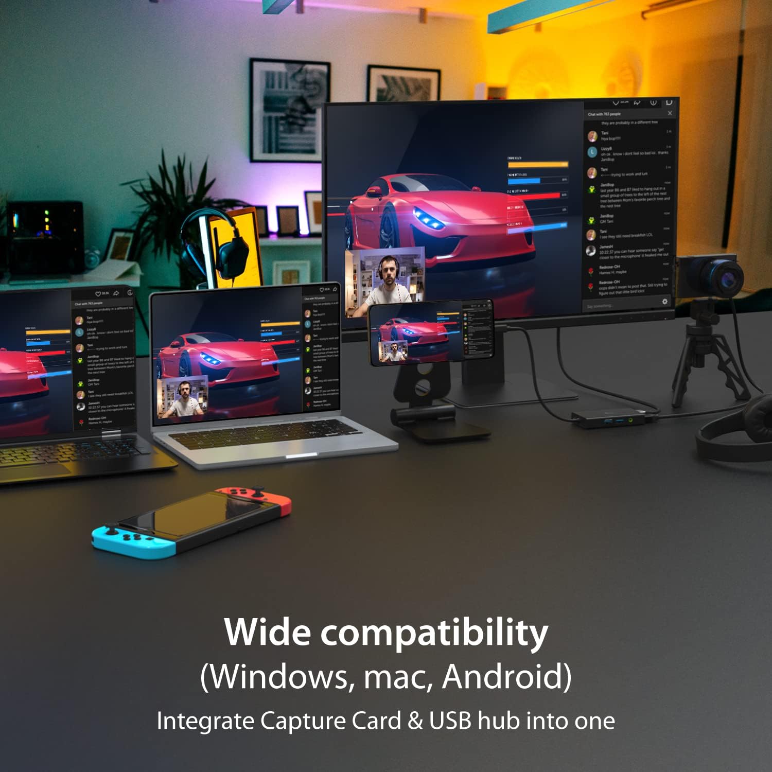 - Das kompakte und leichte Design macht diesen Video-Capture-Hub perfekt für mobiles Streaming.