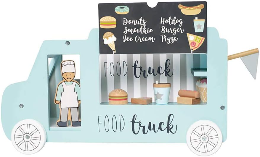 - Lieferumfang: 1 x Food-Truck, 1 x Koch, 1 x Donut, 2 x Eiscreme, 1 x Hamburger, 1 x Hot Dog, 1 x Pizzasteibe, 1 x Smoothie, 1 x Flagge.
