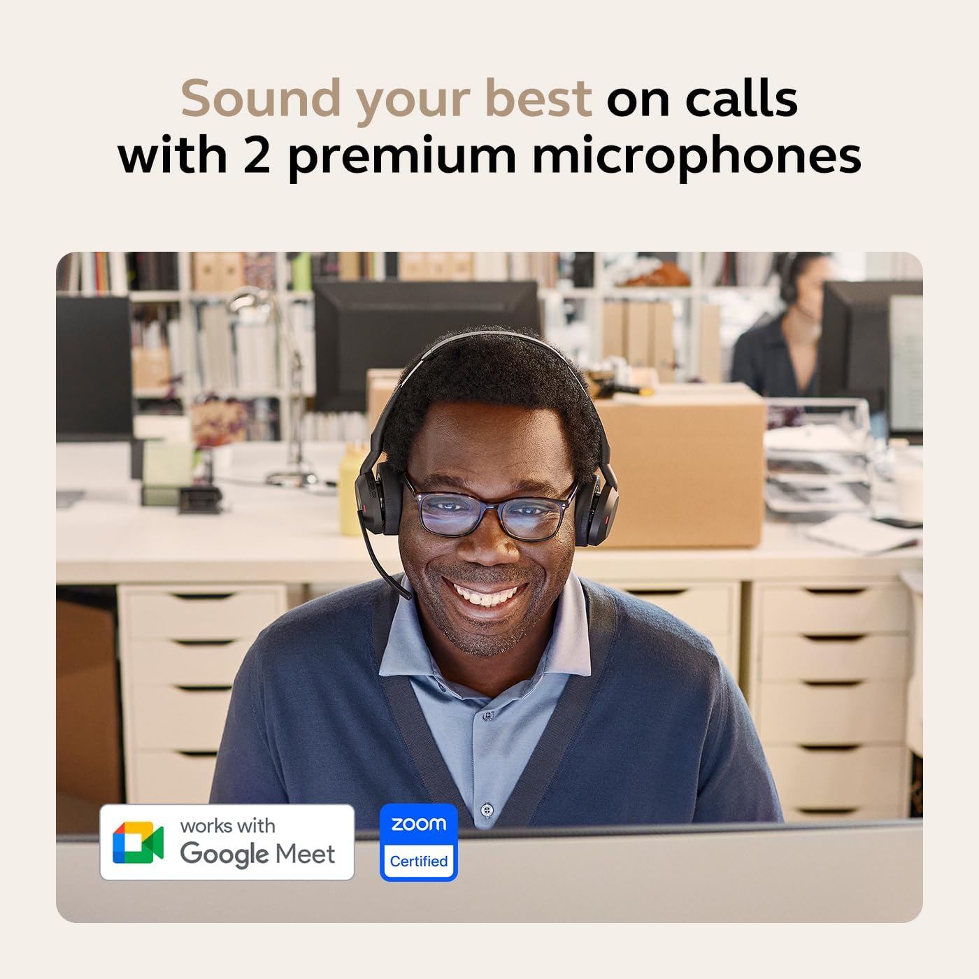 - Im Lieferumfang enthalten: 1x Jabra Evolve2 55 schnurloses Stereo Bluetooth-Headset mit Ladestation, Link 380 USB-C Bluetooth-Adapter, USB-C-Kabel und Trageetui, Gewicht: 130 g, Farbe: Schwarz